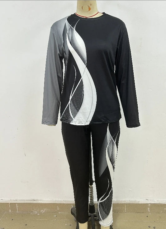 Amay 2 Piece Sets Women Outfits Autumn Winter New Print Long Sleeve Top & Fashion Pants Set Casual Suits Streetwear Y2k Clothes