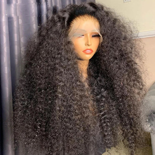 Amay 26inch 180Density Long Glueless Soft Natural Black Kinky Curly Lace Front Wig For Women Babyhair Preplucked Heat Resistant Daily