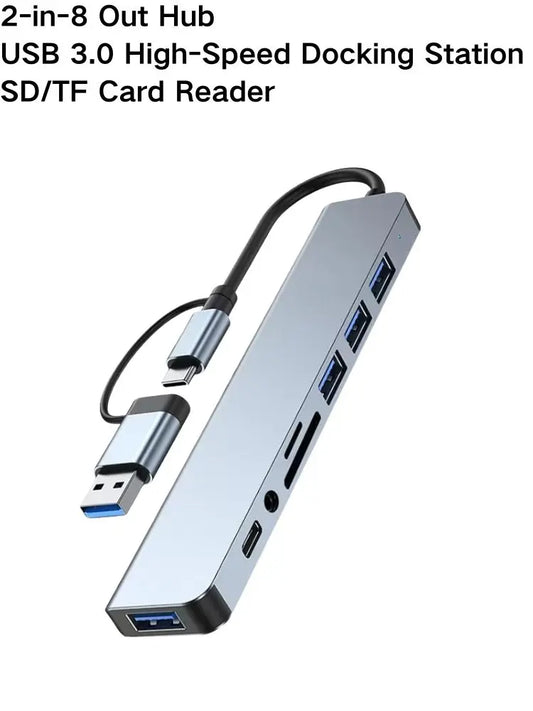 8 In 2 USB C Hub Expander Multiport Adapter Type C Splitter Dock USB 3 Port For Xiaomi Phone Tablet Fast Data Transfer Charging