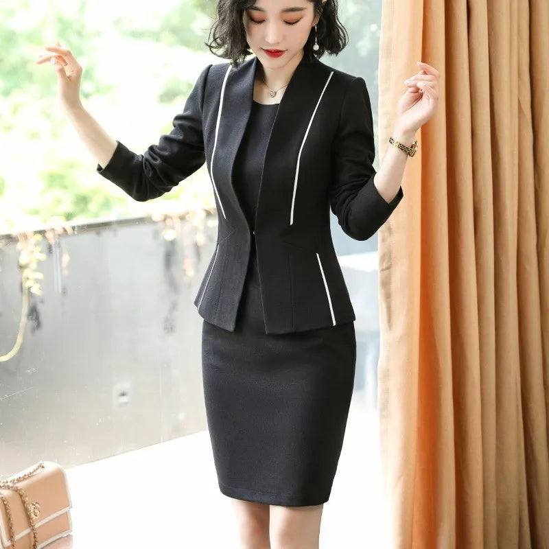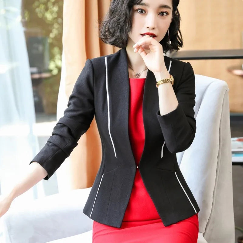 2025 White Women Formal Dress Suit Ladies Elegant Business Office Wear Blazer Suits Long Sleeve Blazer Jacket Dresses Plus Size