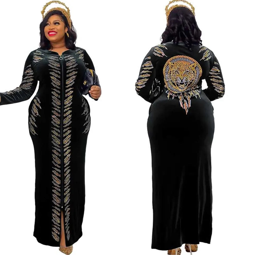 Amay Explosive Women's Middle East Muslim Robe Korean Velvet Hot Diamond Long-sleeved Dress 8718#