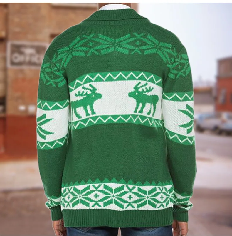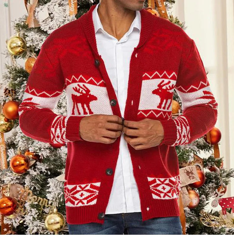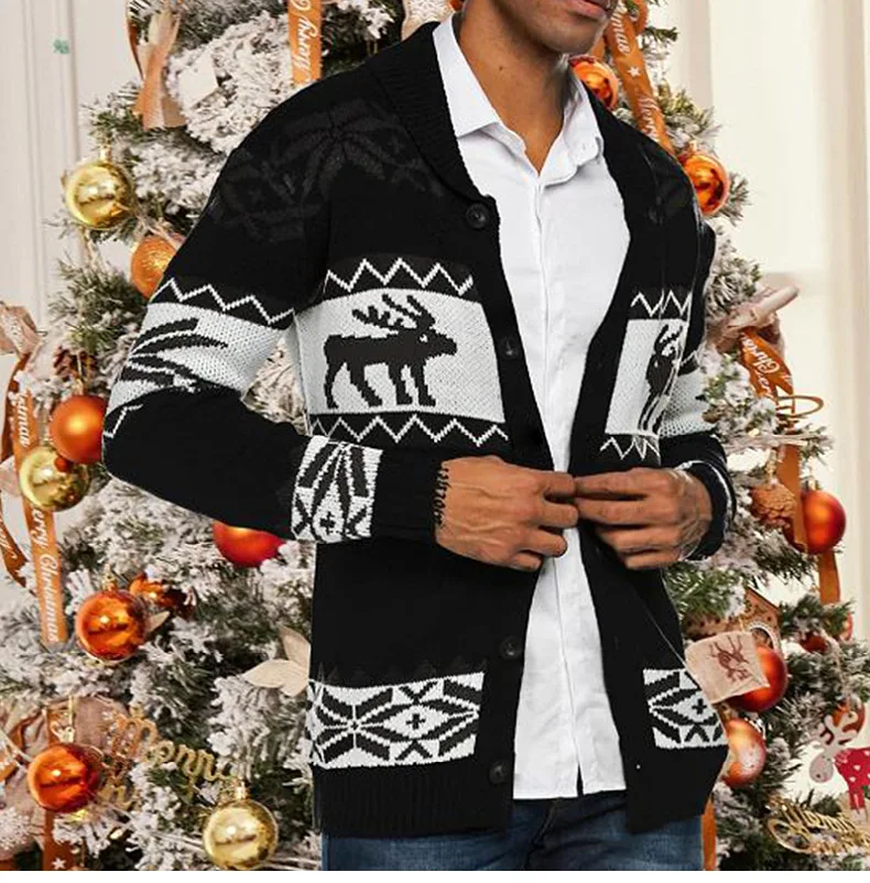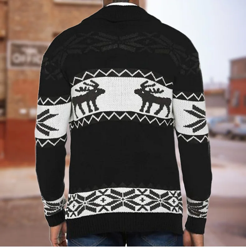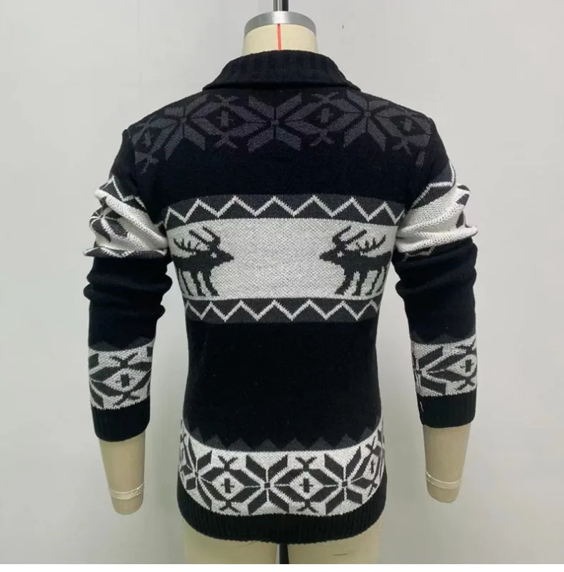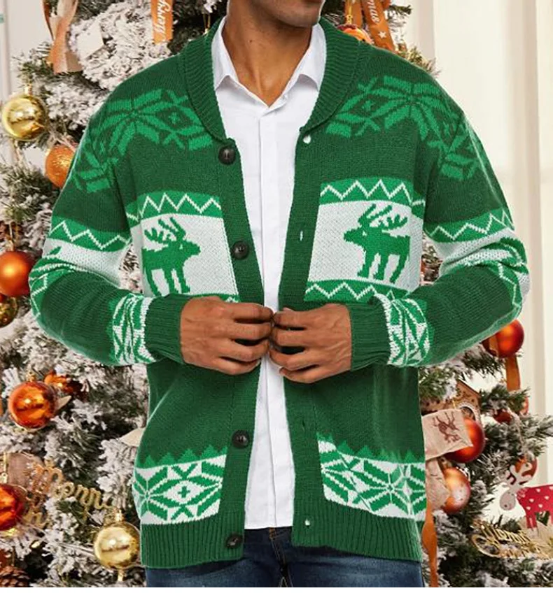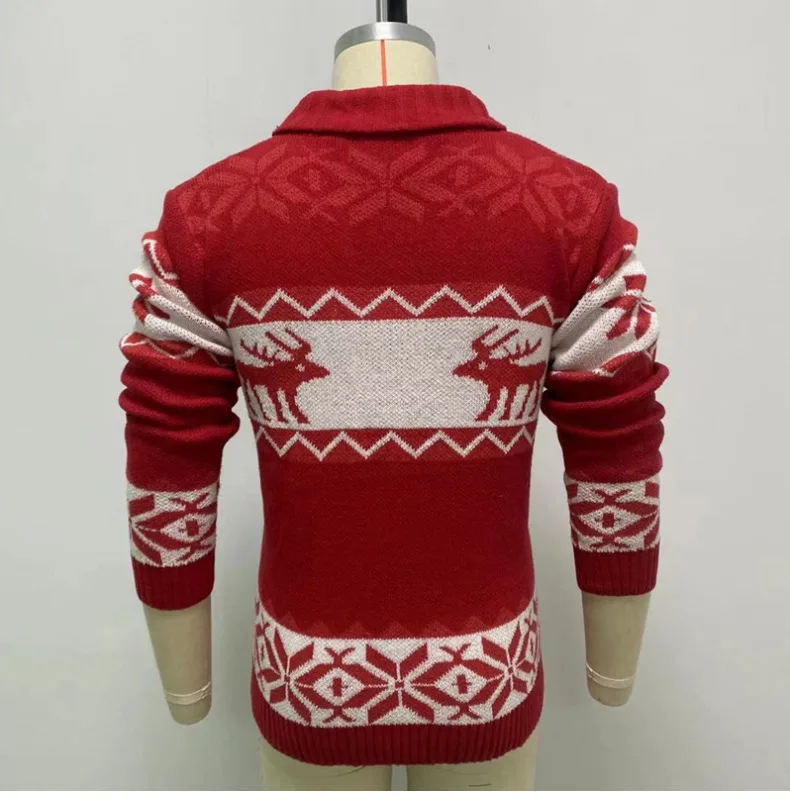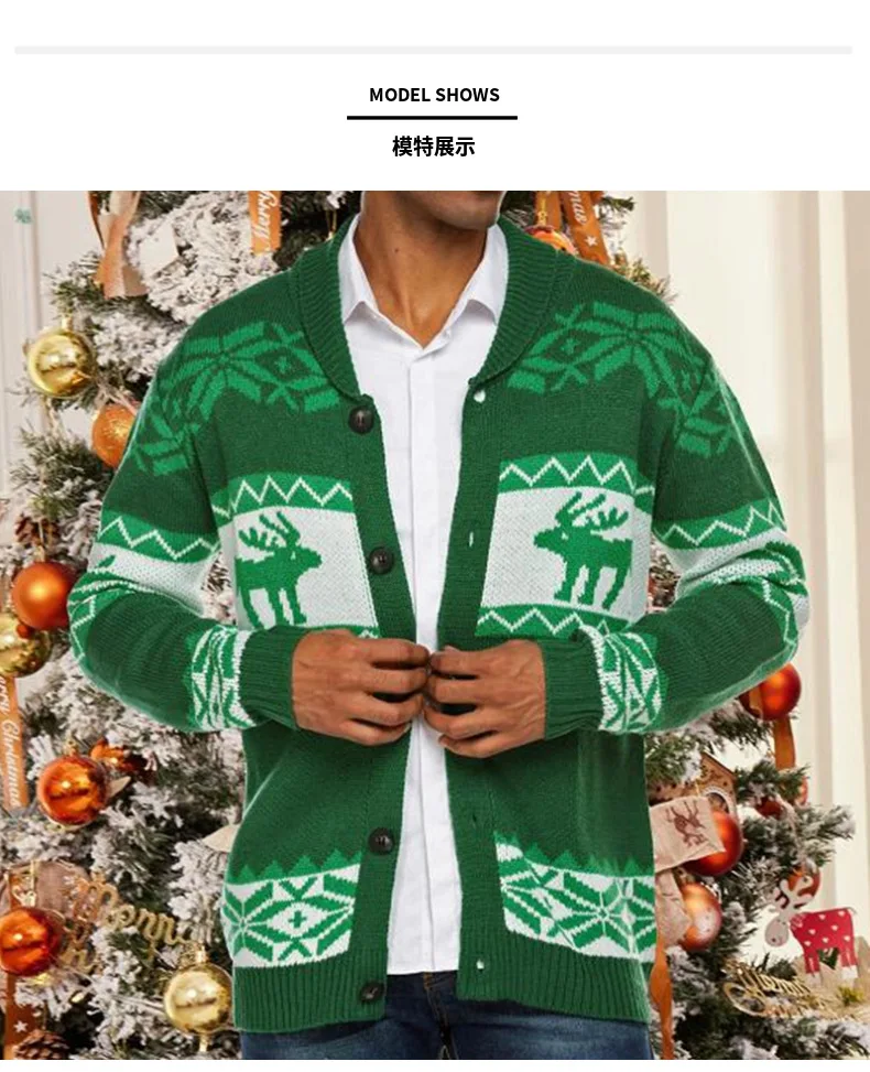 2025 Autumn Winter Men's Snowflake Christmas Sweater Knitted Sweater V-Neck Casual Knit Jumpers Pullovers Home Warm Outwear Male