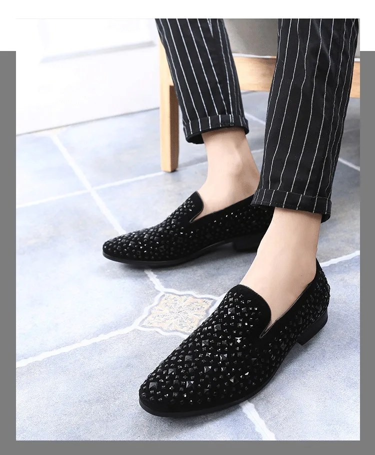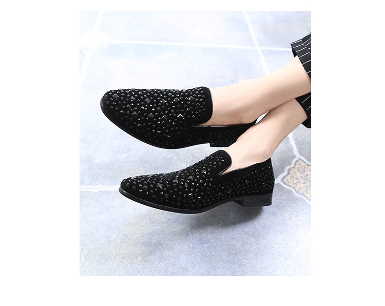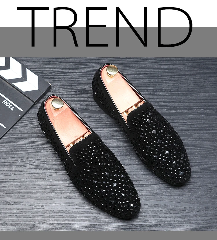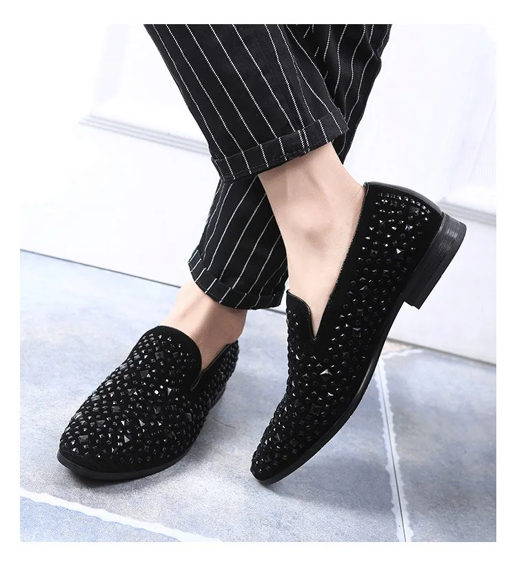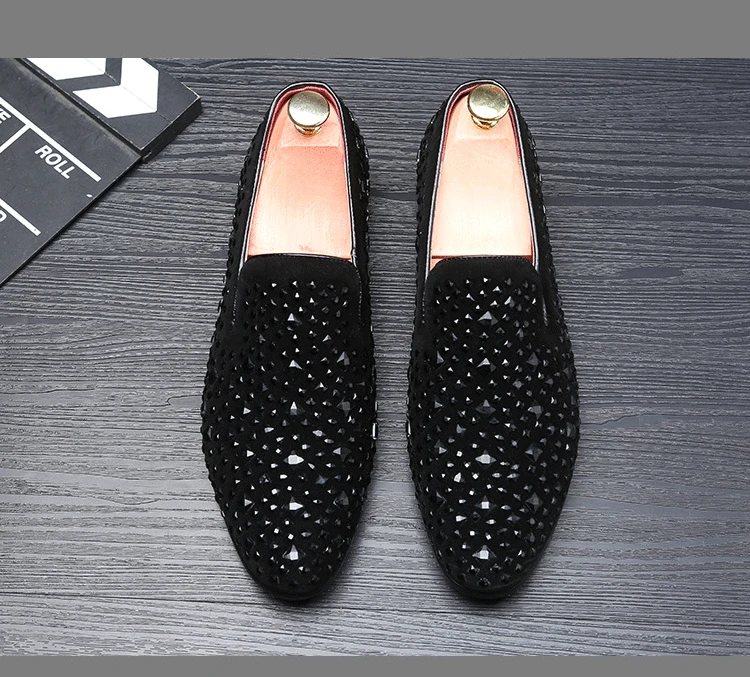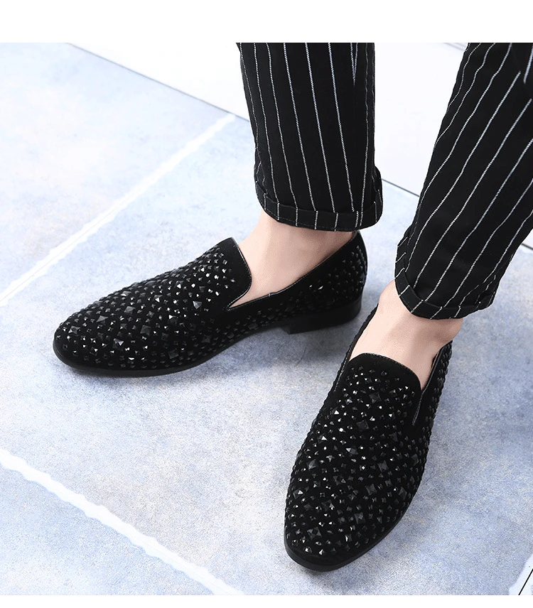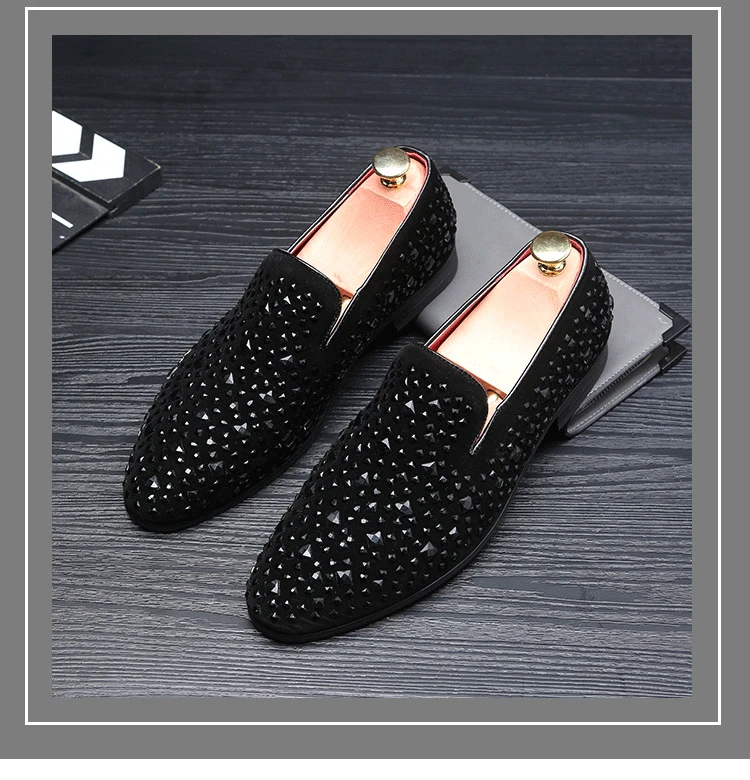 Amay Men's Rhinestones Dress Shoes Luxury Italian Style Fashion Party Flats Men Formal Shoes Nightclub Wedding Formal Shoes