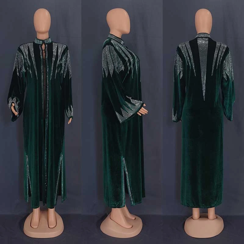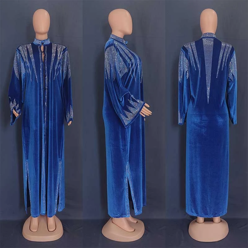 Amay Diamonds Velvet African Dresses for Women Ankara Dashiki Abaya Muslim Dress Moroccan Kaftan Arab Robe Jalabiya Caftan Gown