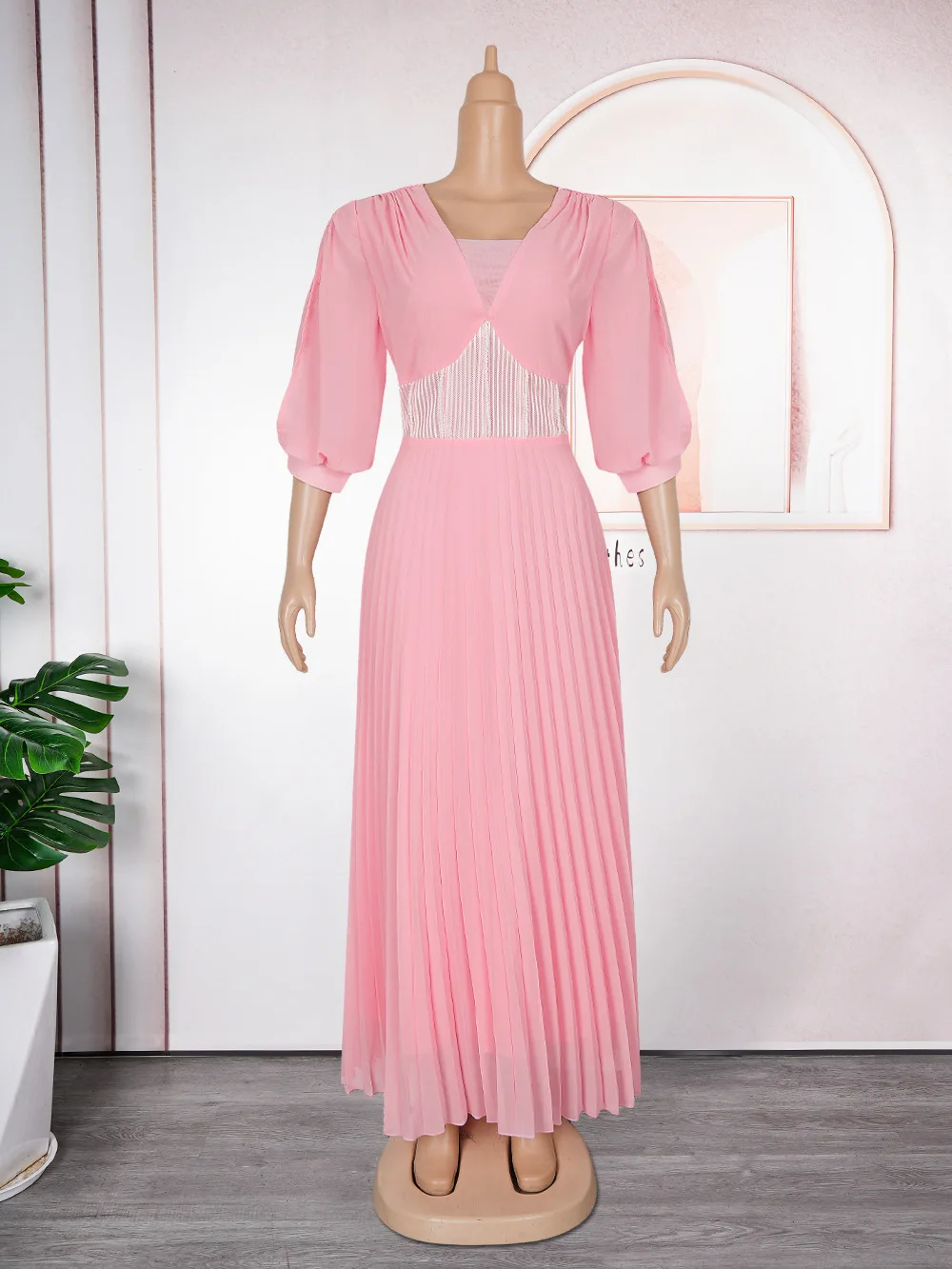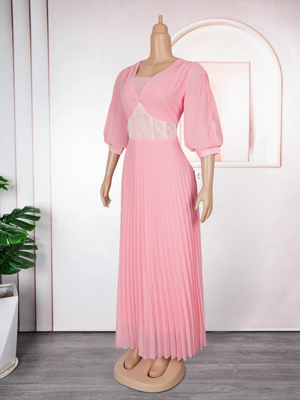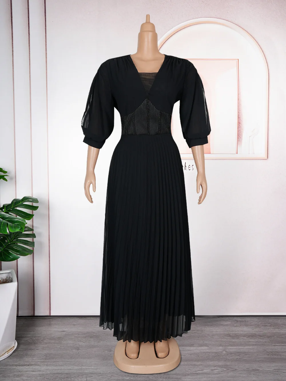 Aelegant African Dresses for Women Chiffon Pleated Long Evening Party Dress Wedding Gown Ankara Dashiki Africa Clothing Robe New