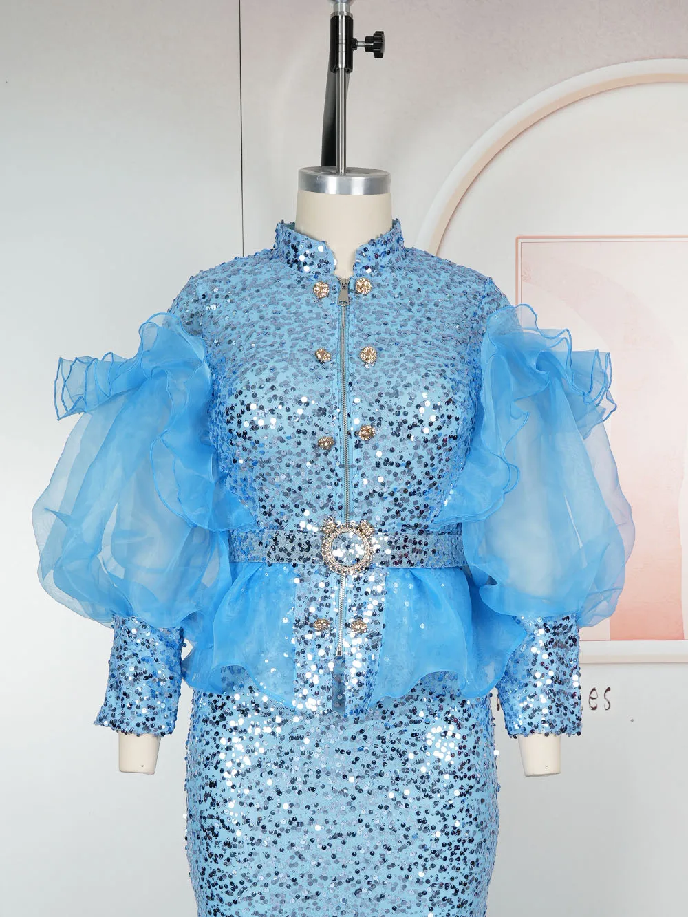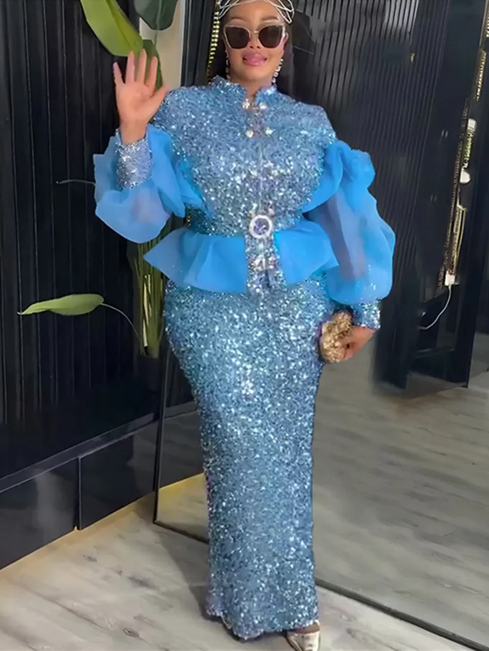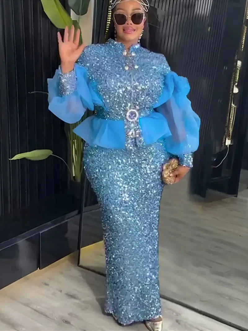 Amay Clothes for Women 2 PCS Sets Tops and Skirts Suits Dashiki Ankara Turkey Sequin Outfit Plus Size Wedding Party Dresses