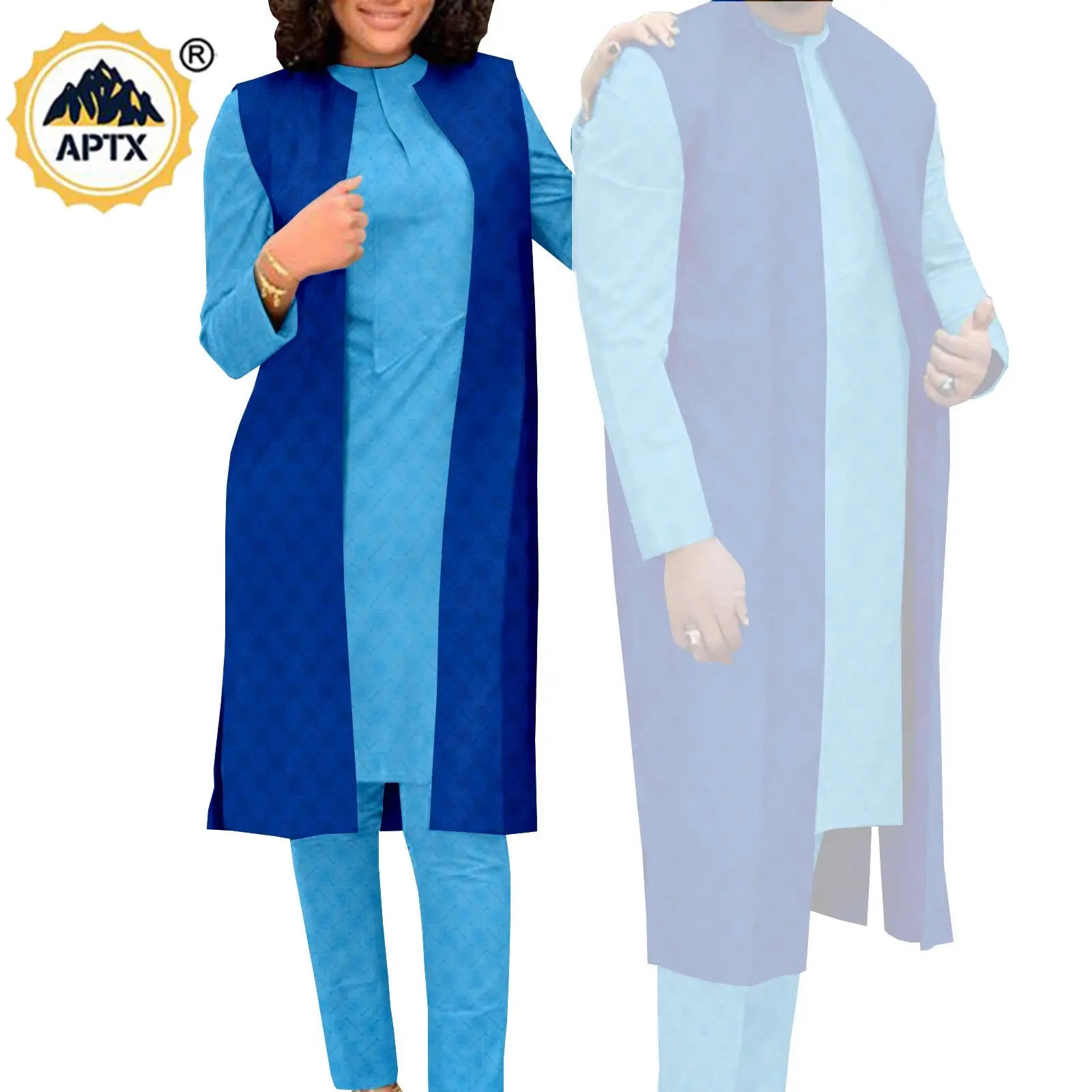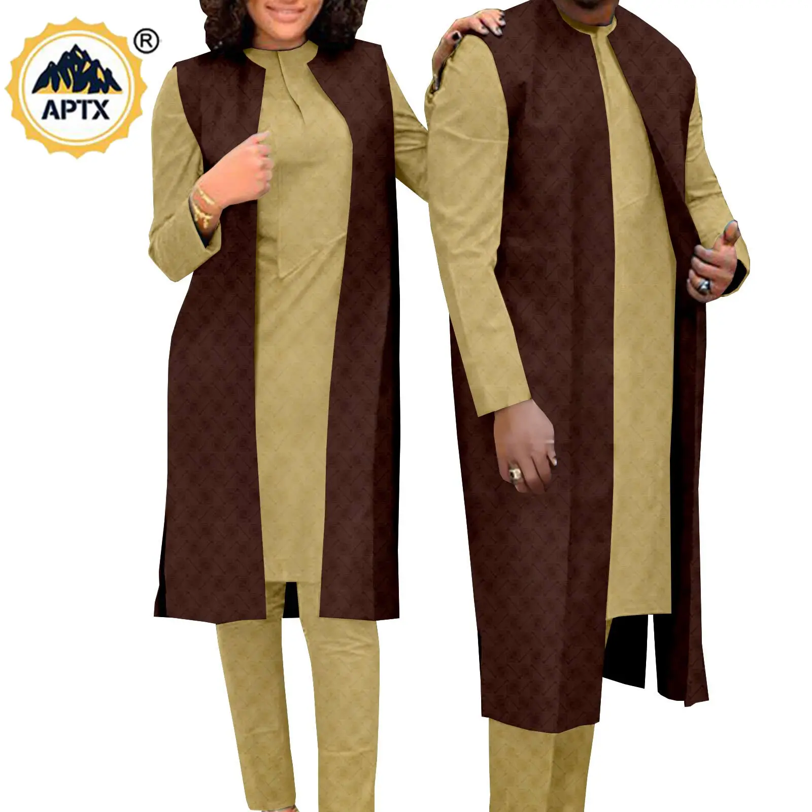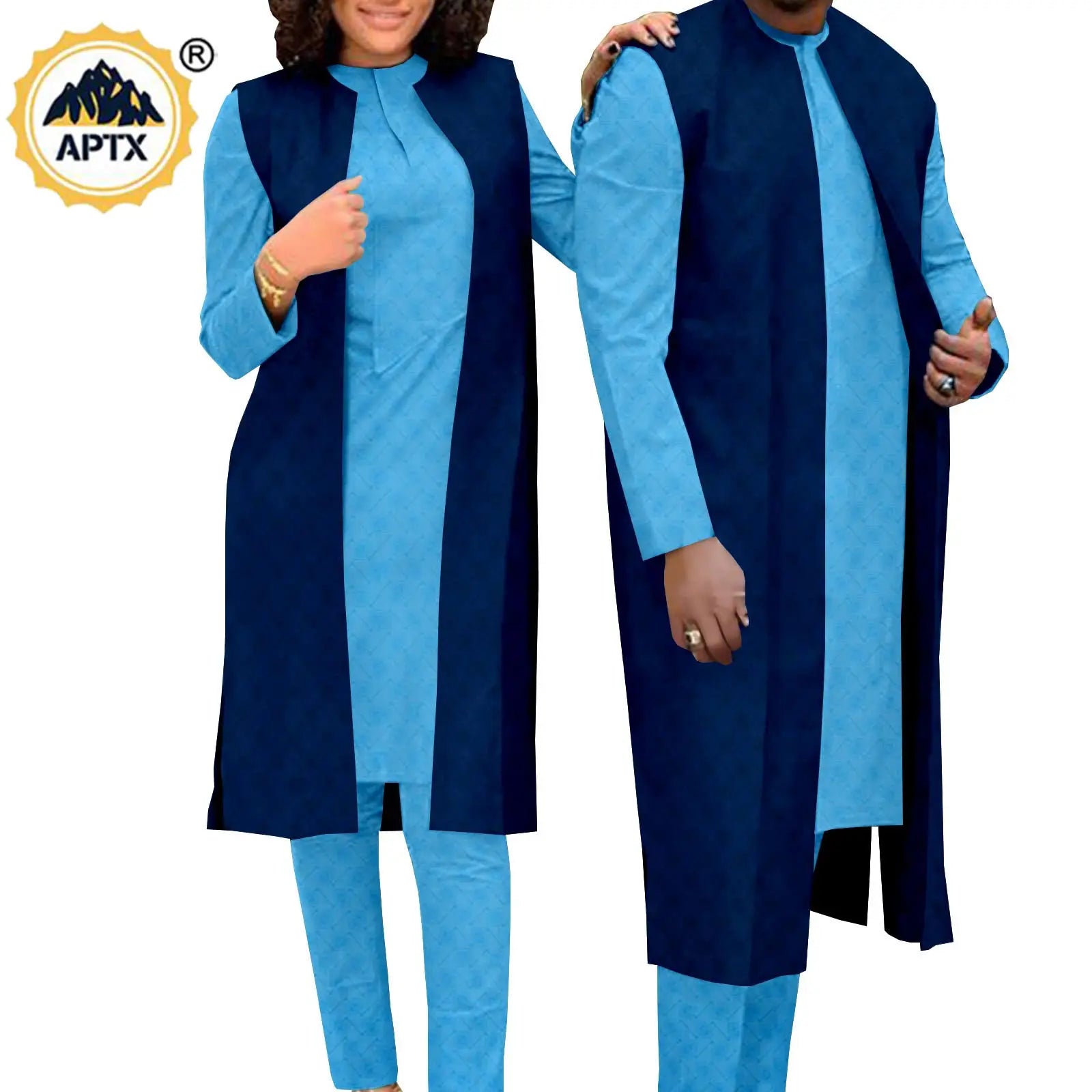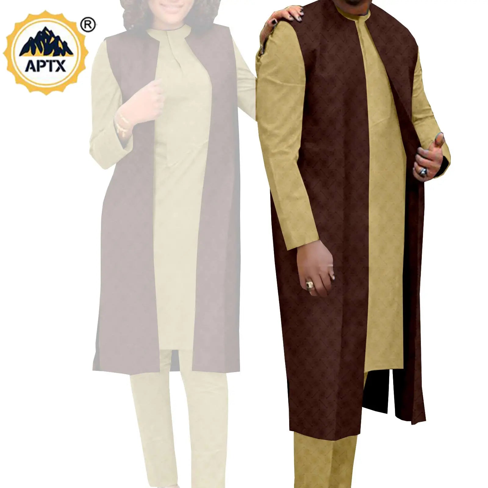 Amay Couples Clothes Bazin Riche Women Outfits 3 Pieces Sets Match Men Jacquard Shirt and Pants and Vest Jackets Sets Y22C029