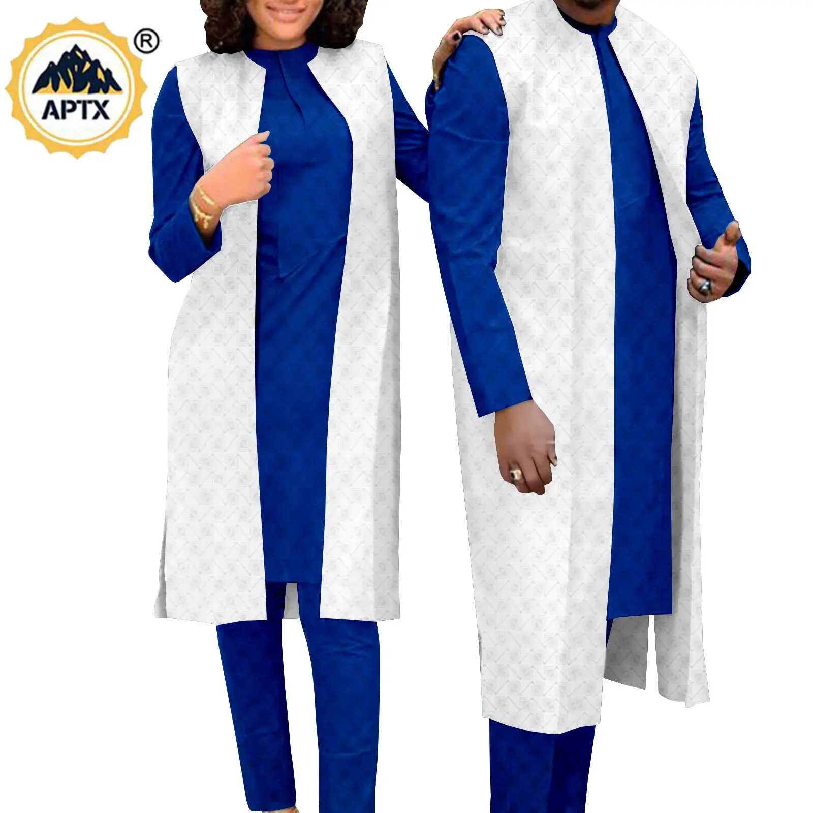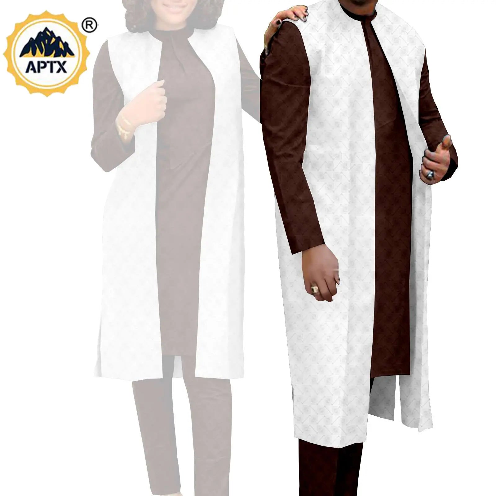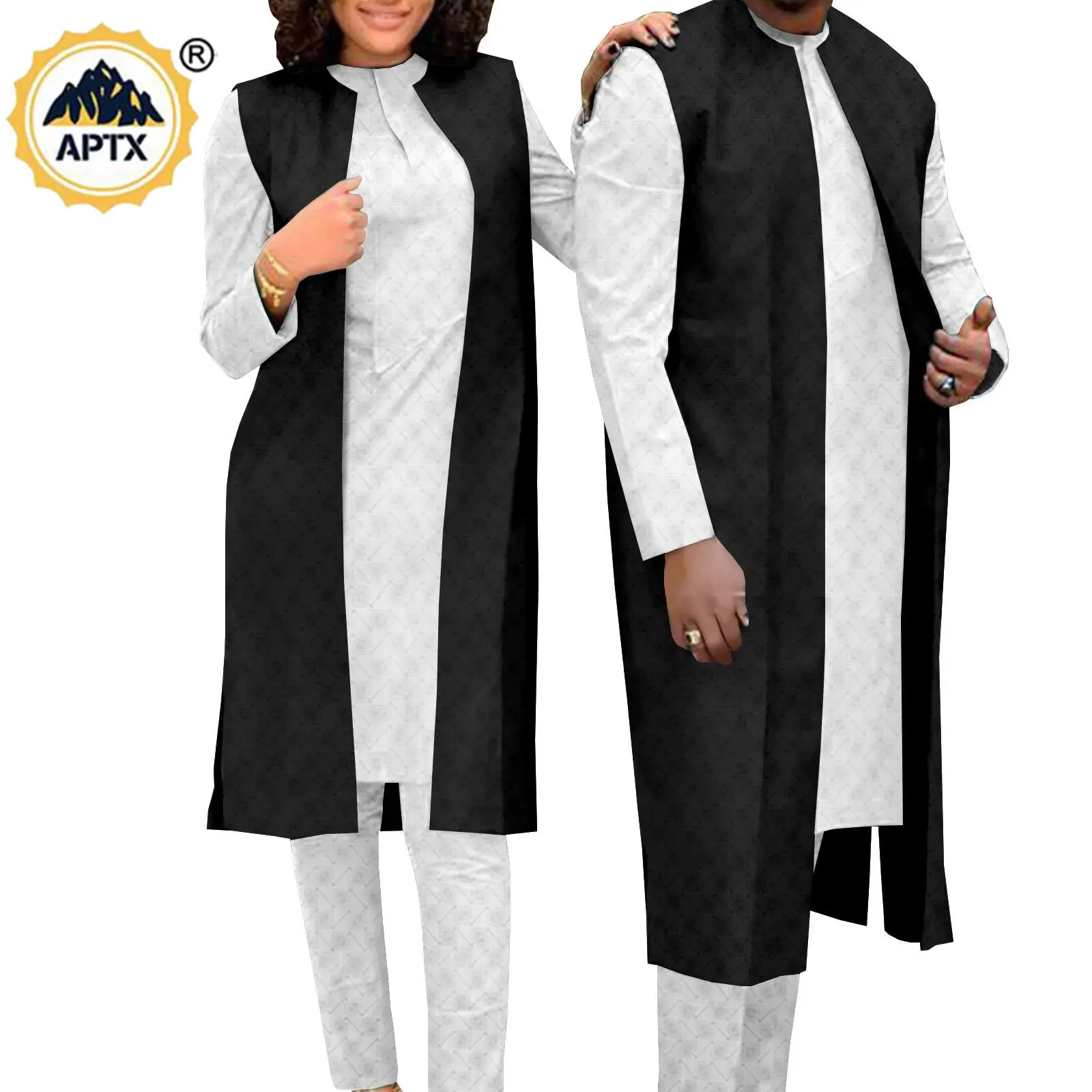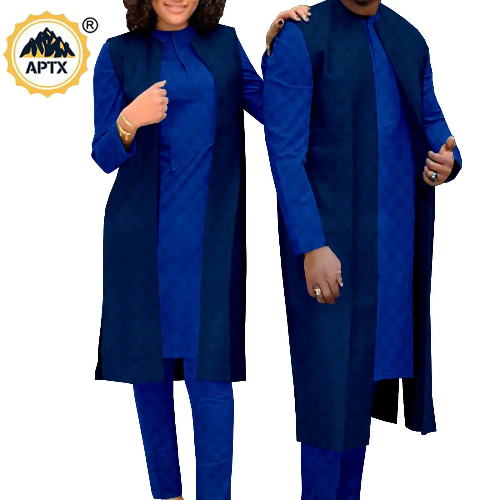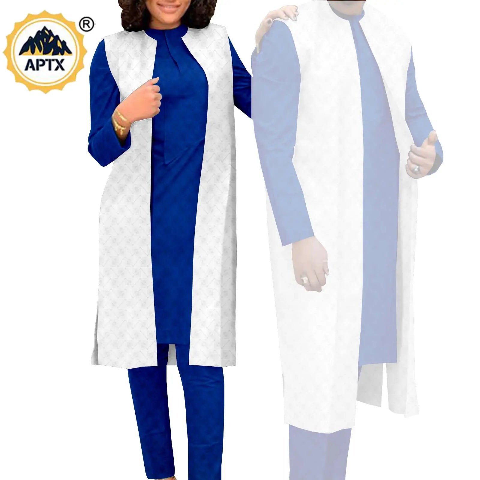 Amay Couples Clothes Bazin Riche Women Outfits 3 Pieces Sets Match Men Jacquard Shirt and Pants and Vest Jackets Sets Y22C029