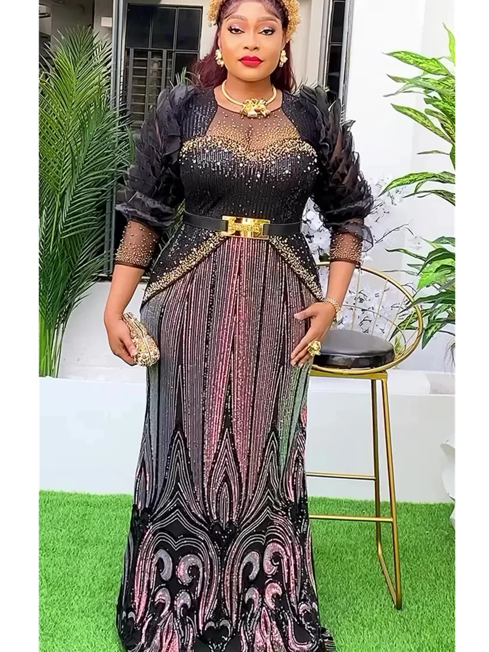 Amay Dresses for Women New Fashion Plus Size Sequin Evening Party Long Dress Dashiki Ankara Outfits Robe African Clothes
