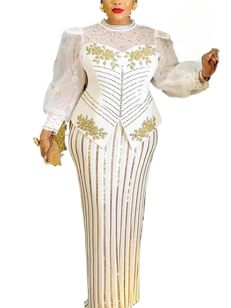 Amay Dresses for Women New Fashion Plus Size Sequin Evening Party Long Dress Dashiki Ankara Outfits Robe African Clothes