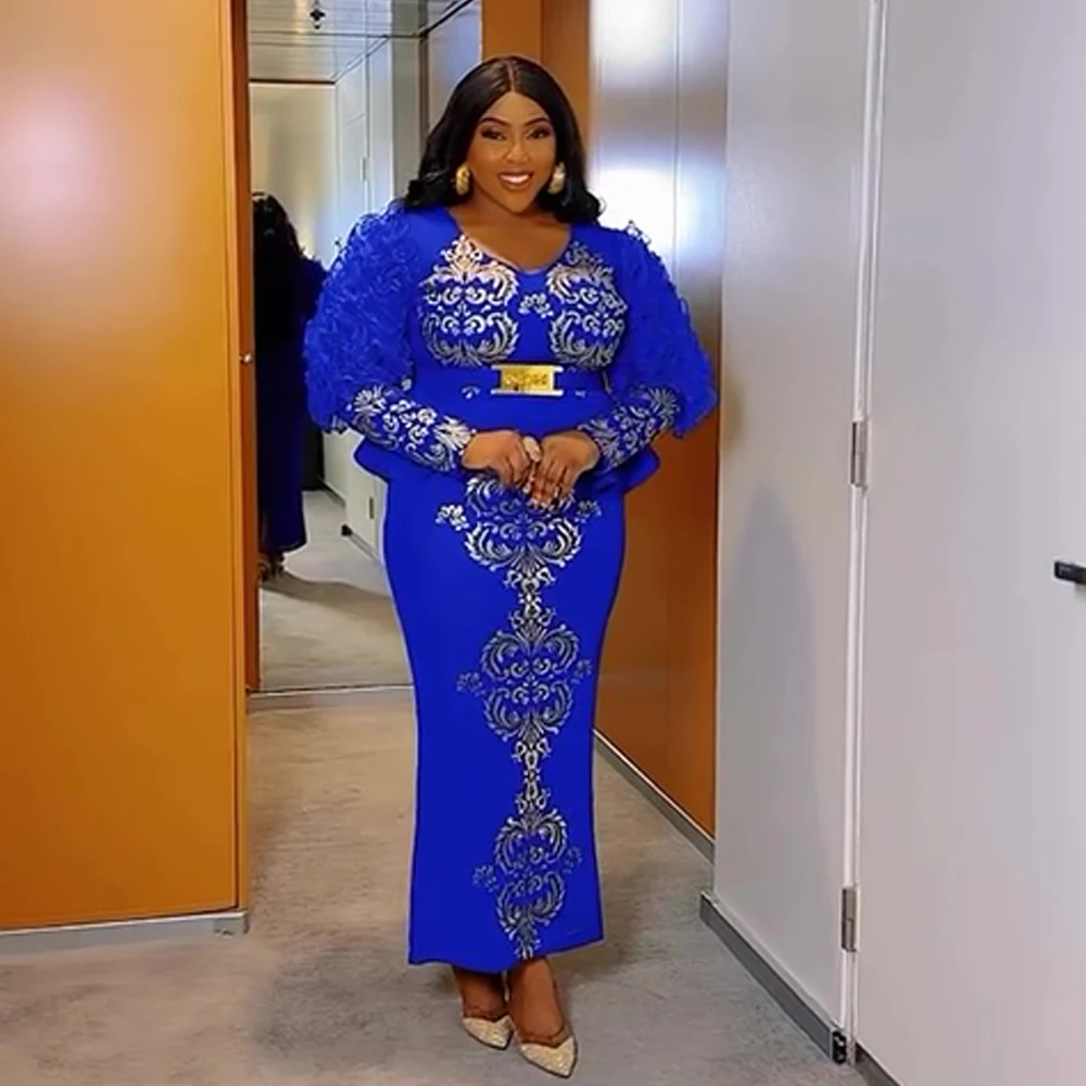Increase quantity for Amay African Dresses for Women New Fashion Plus Size Sequin Evening Party Long Dress Dashiki Ankara Outfits Robe African Clothes