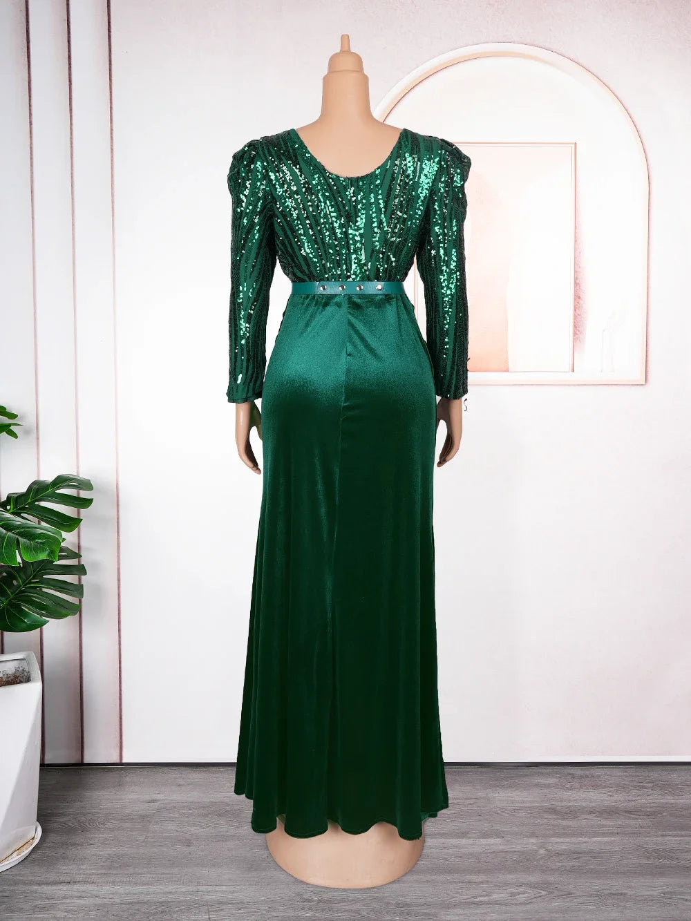 Amay Dresses for Women New Fashion Plus Size Sequin Evening Party Long Dress Dashiki Ankara Outfits Robe African Clothes