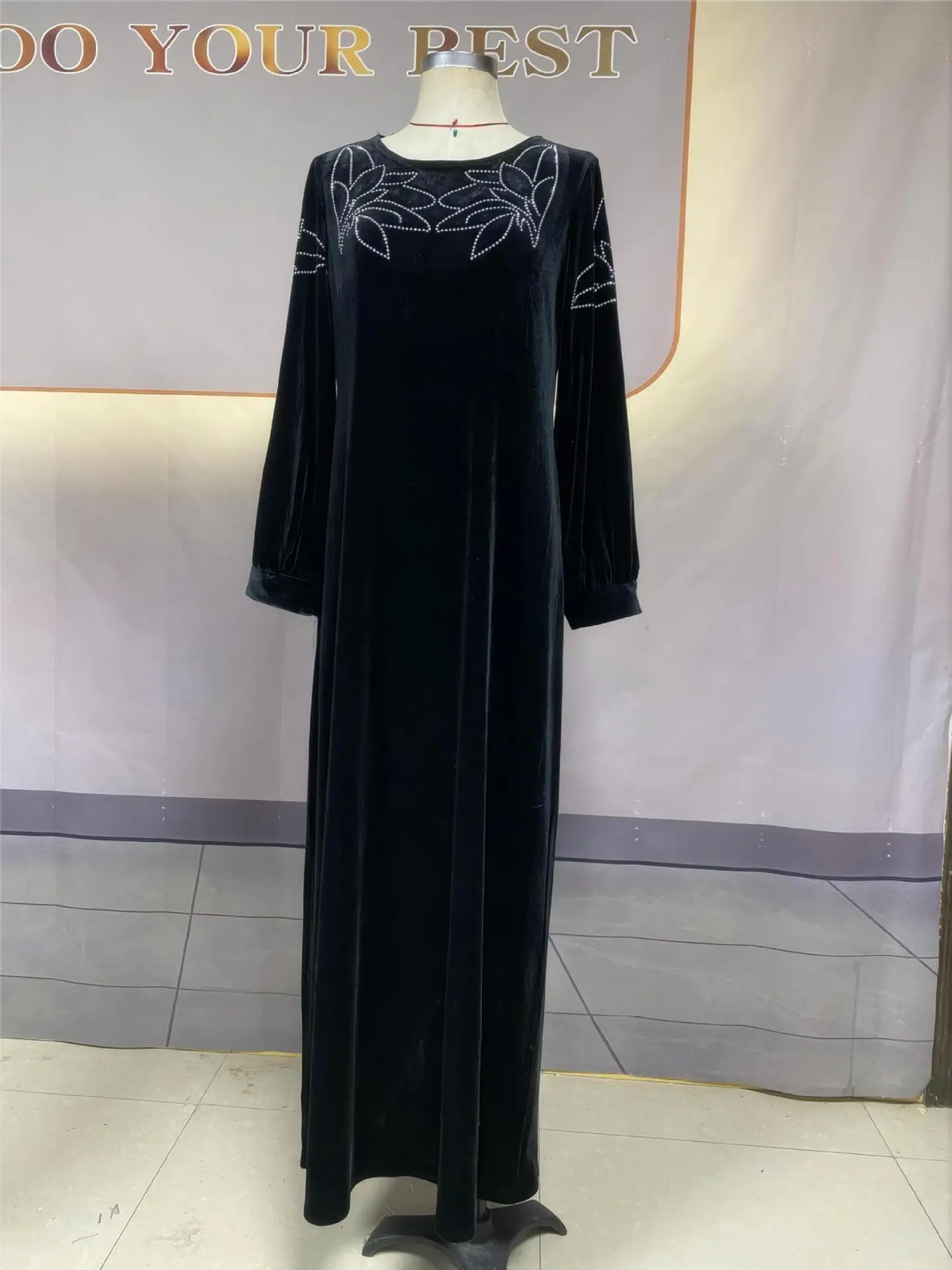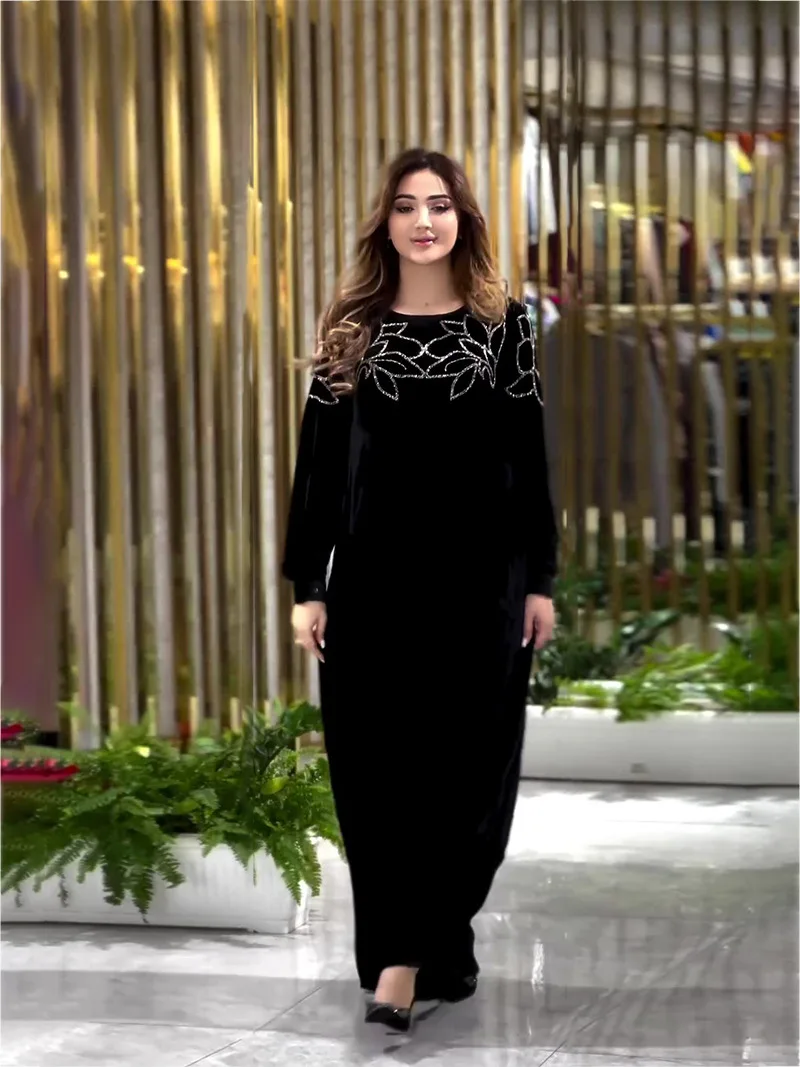 Amay Dresses for Women Long Sleeve Turkey Diamonds Evening Wedding Party Floor Length Dress Muslim Africa Clothes
