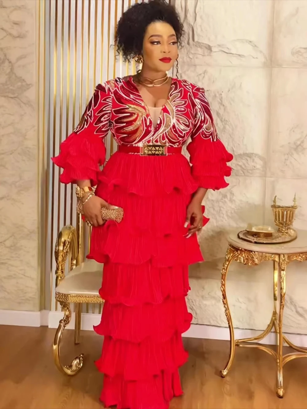 Amay Dresses For Women Luxury Dashiki Sequin Maxy Robes Plus Size Ruffle Long Dress Wedding Party Birthday Evening Clothing
