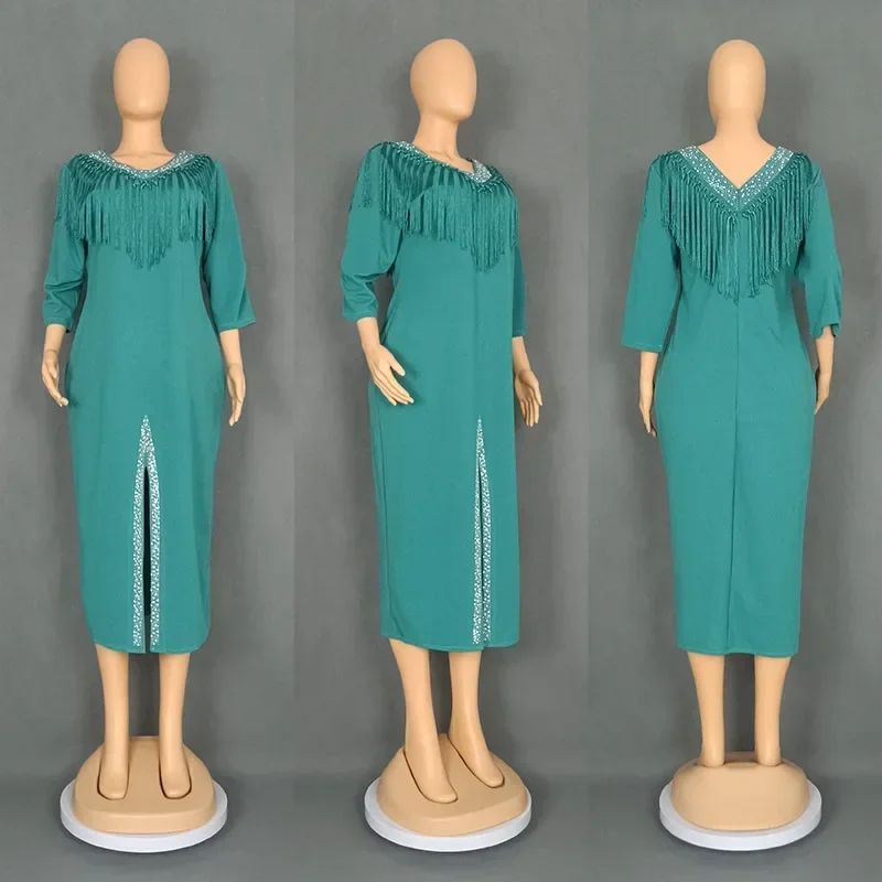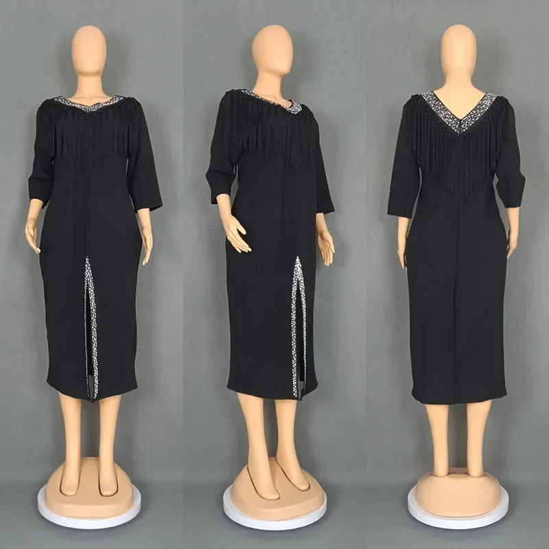Amay Dresses for Women Plus Size Clothing Summer Long Sleeve Tassel Party Evening Maxy Dress Outfits Dashiki Luxury