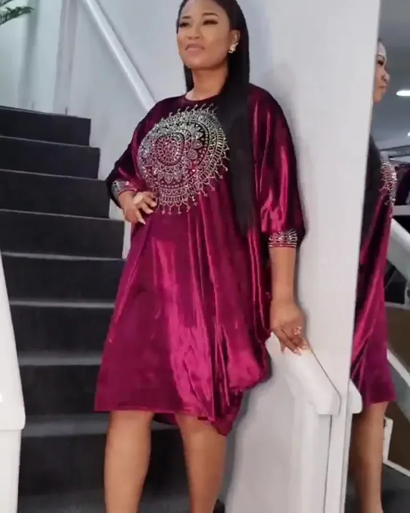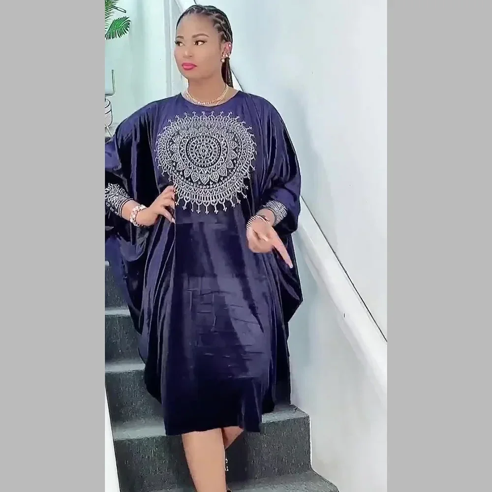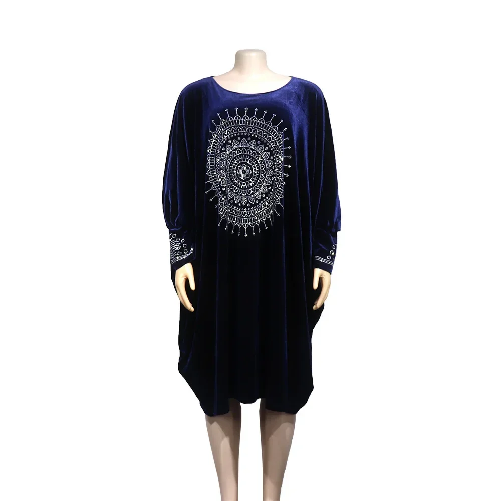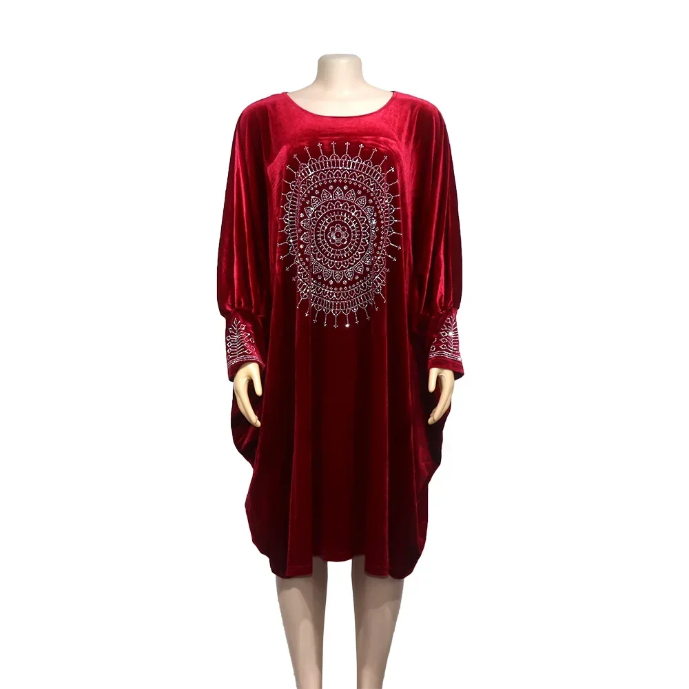 Amay ethnic women's loose dress velvet fabric artificial stone decoration luxury fashion