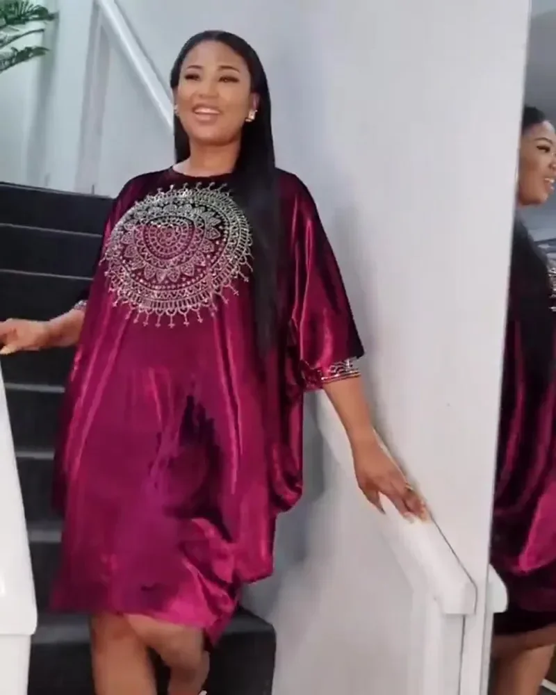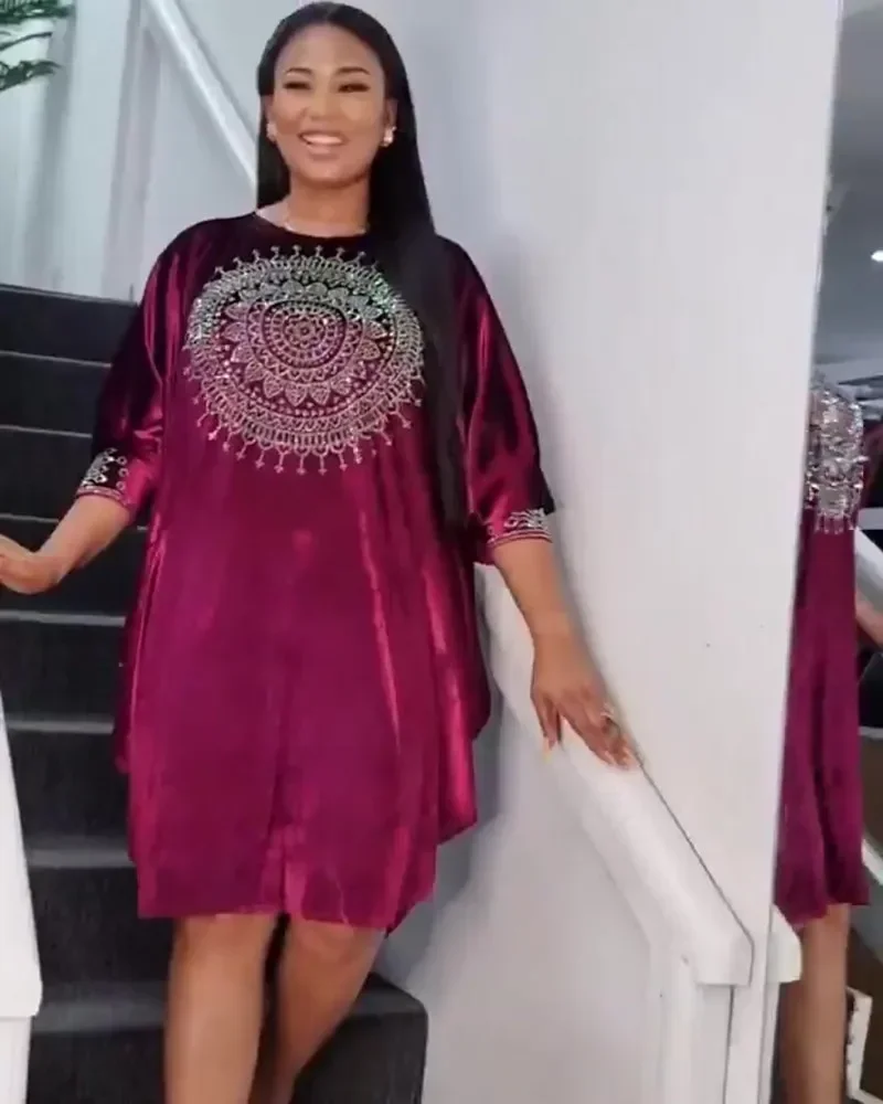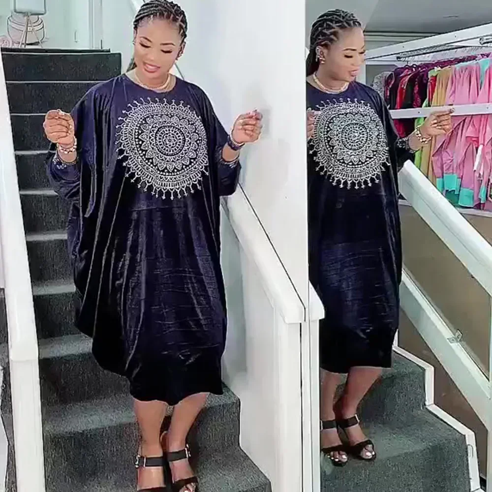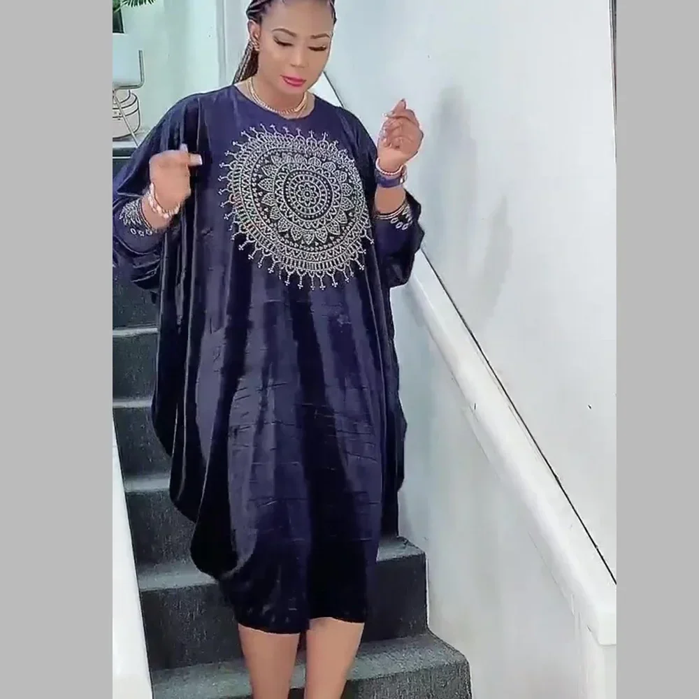 Amay ethnic women's loose dress velvet fabric artificial stone decoration luxury fashion