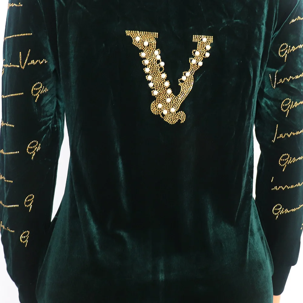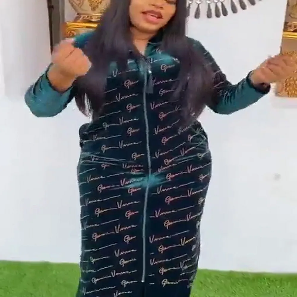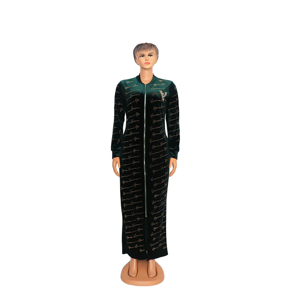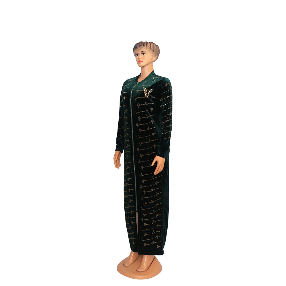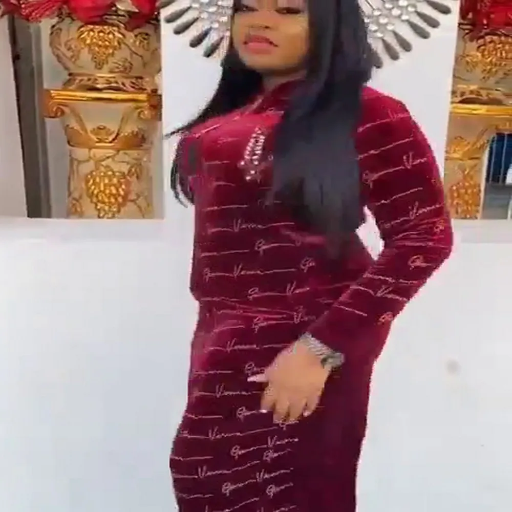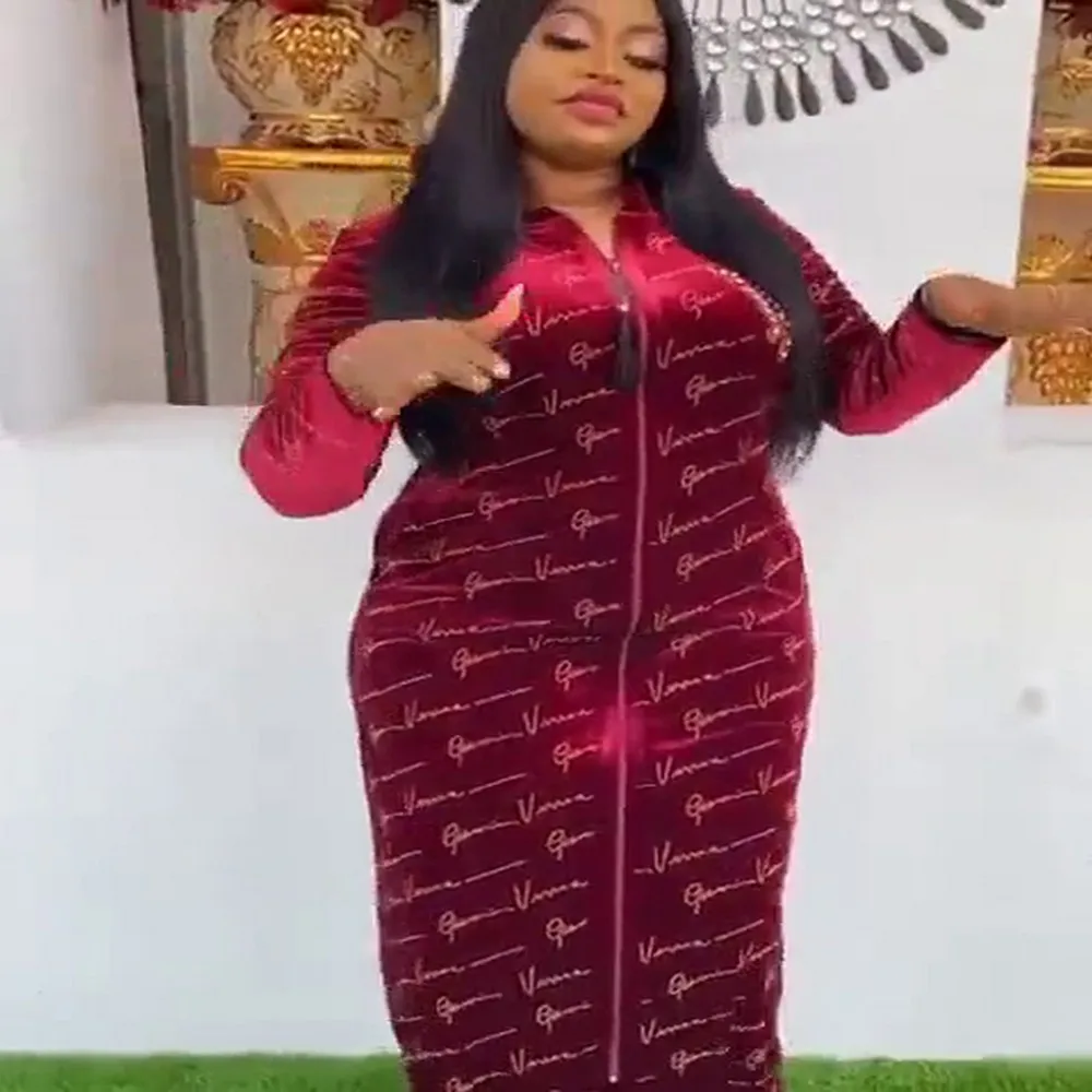 Amay mom fashion dress stretches gold velvet fabric front and back sleeves hot drilling zipper dress