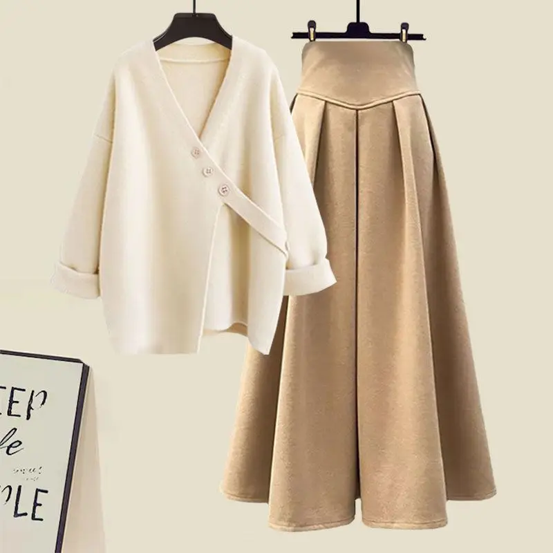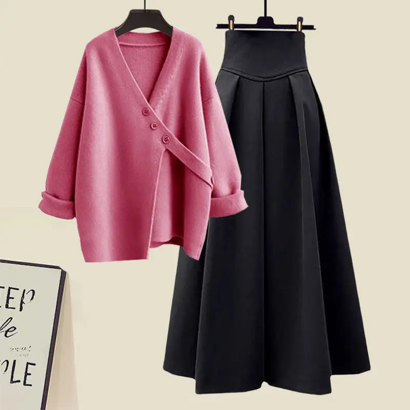 Amay Autumn and Winter Fashion Women's Set New Korean Knitted Sweater Sweater Age Reducing Slim Half Skirt Two Piece Set