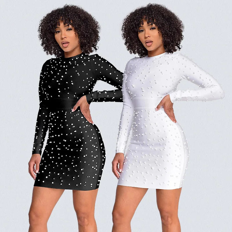 Beading Elegant Party Club Dresses Long Sleeve Sexy Evening Dresses Women's Dress Fashion Bodycon Welcome Cocktail Prom Dress