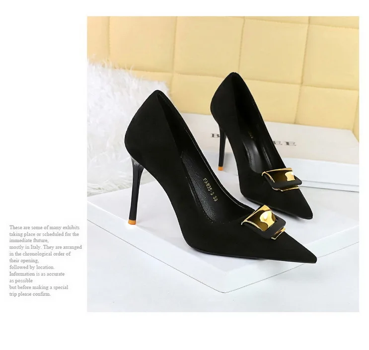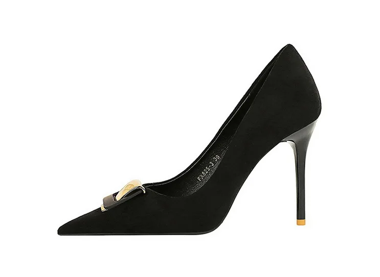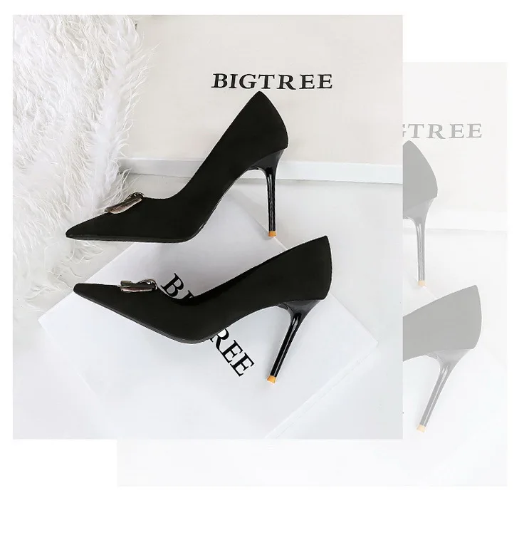 Amay BIGTREE Shoes Metal Buckle Decoration Women Pumps Suede High Heels Ladies Shoes Stilettos Luxury Women Heels Shoes Large Size 43