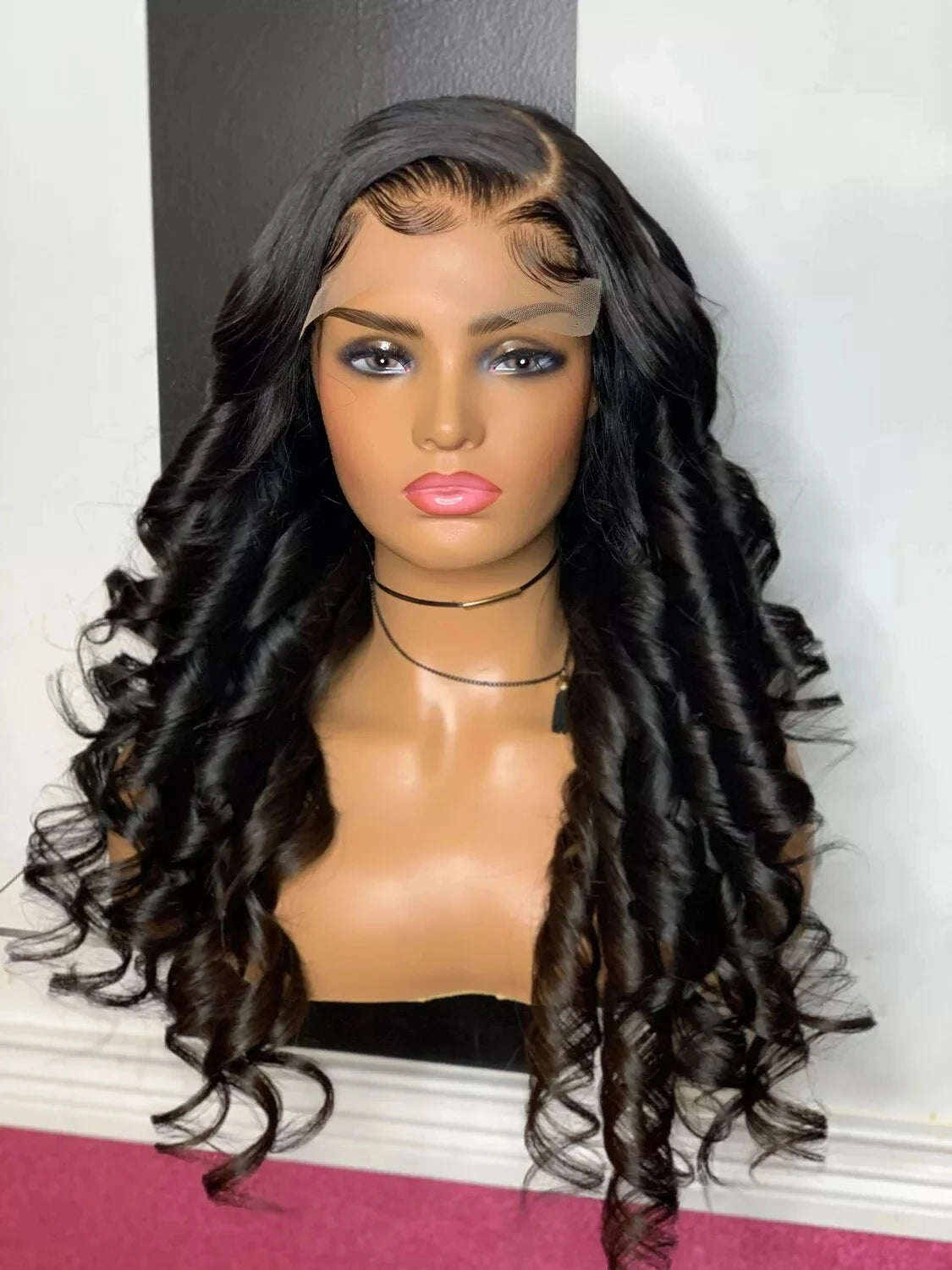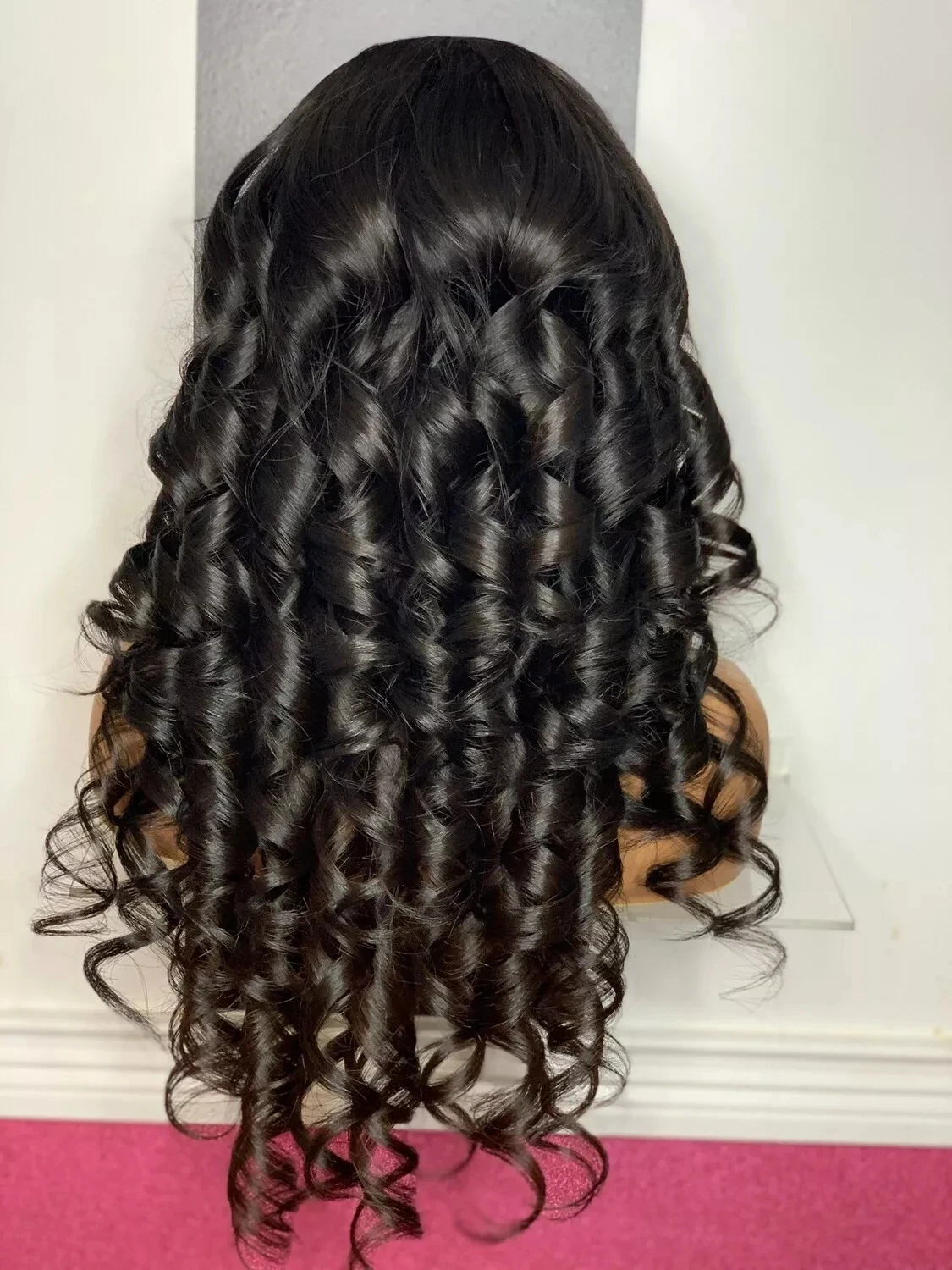 Amay Black 1B Soft Glueless Spring Curly Lace Front Wig 26inch Long 180 Density For African Women Baby Hair Preplucked Daily