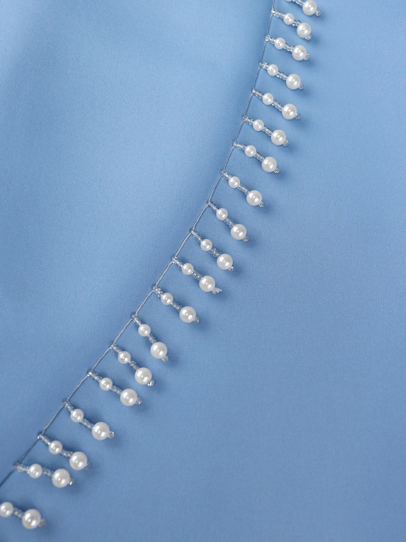Amay Blue Tassel Evening Gown Square Neck Short Sleeved Beaded Patchwork Wedding Women's Special Occasion Dress Spring New Style