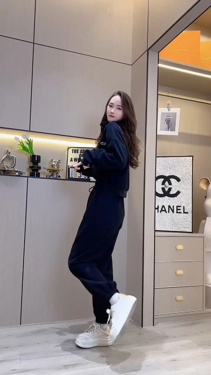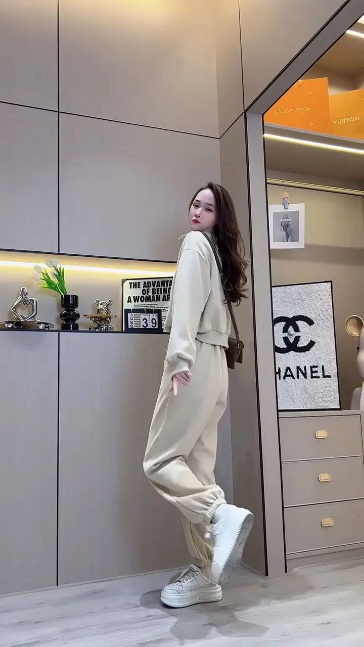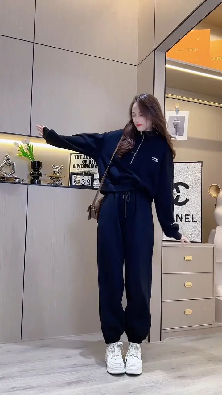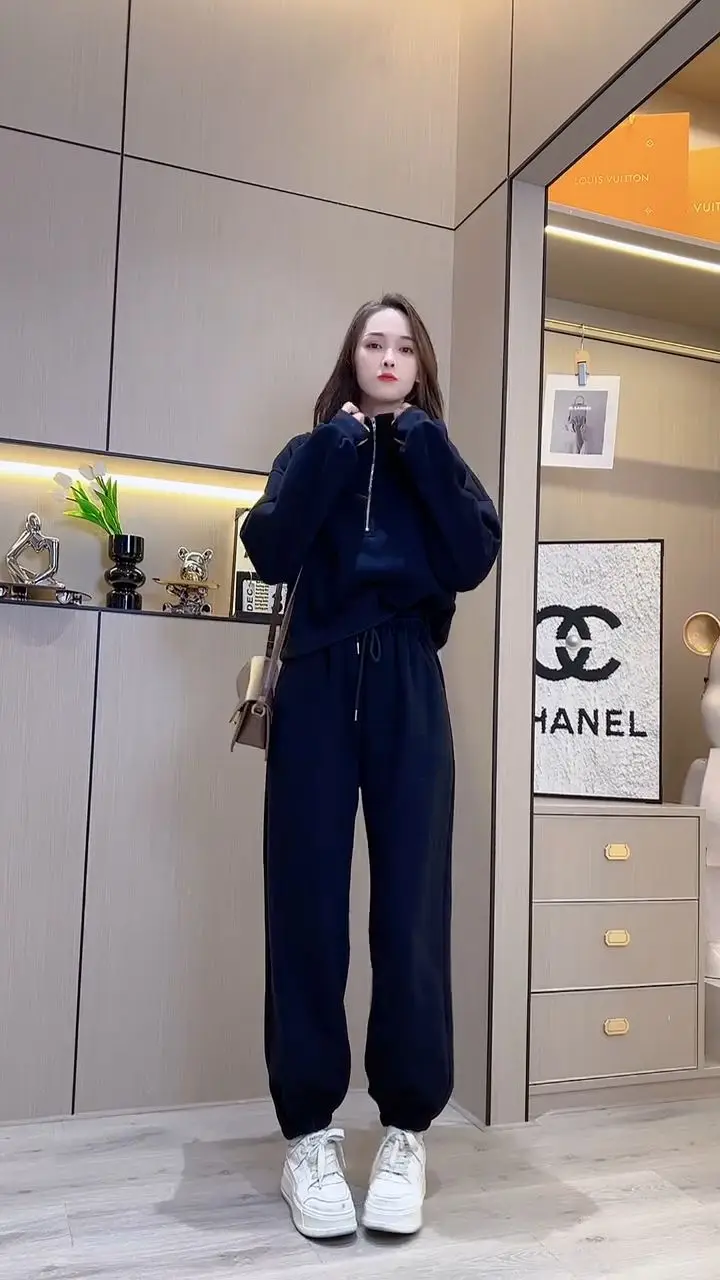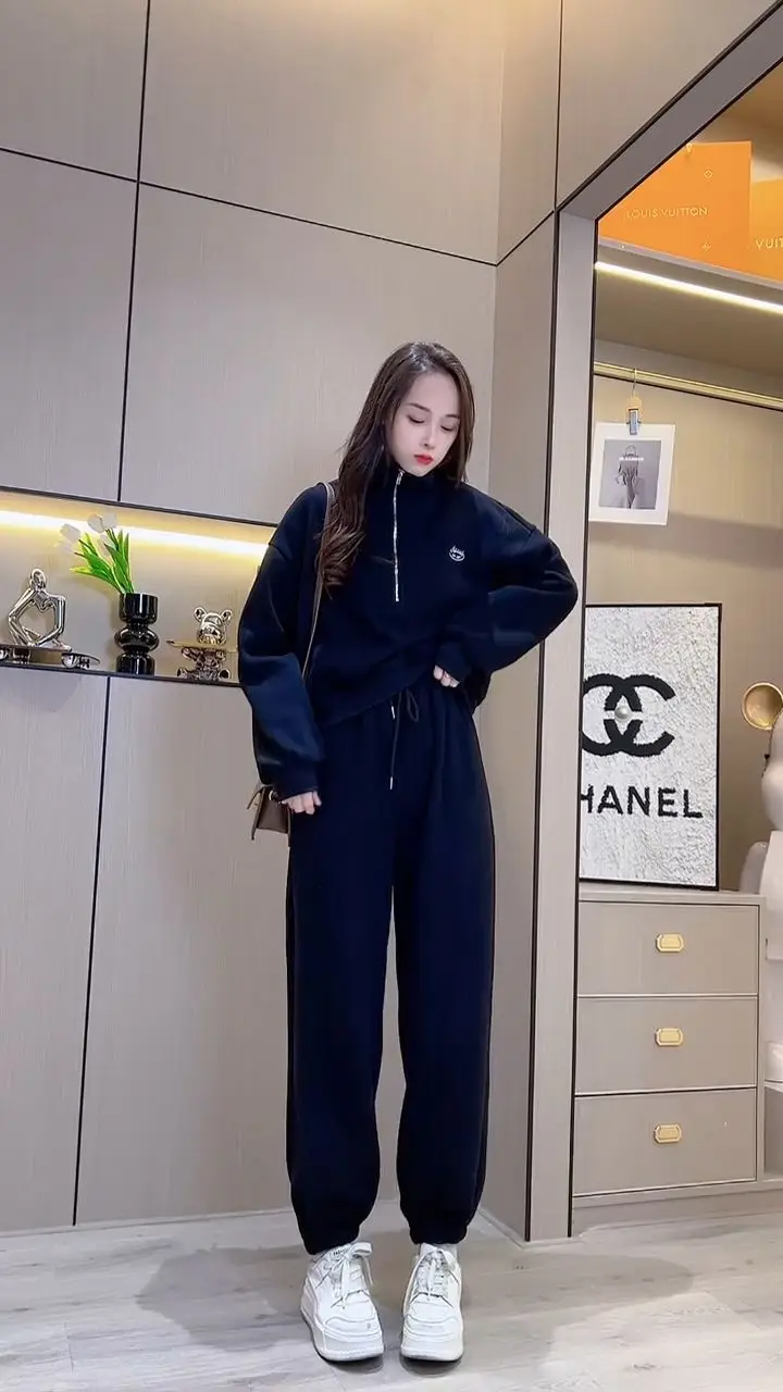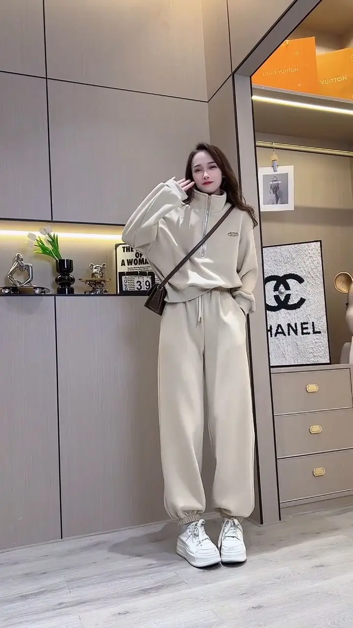 Amay Casual Pants Set for Women, Autumn and Winter Standing Collar Long Sleeved Sweatshirt, Sweatpants Sports Set for Women