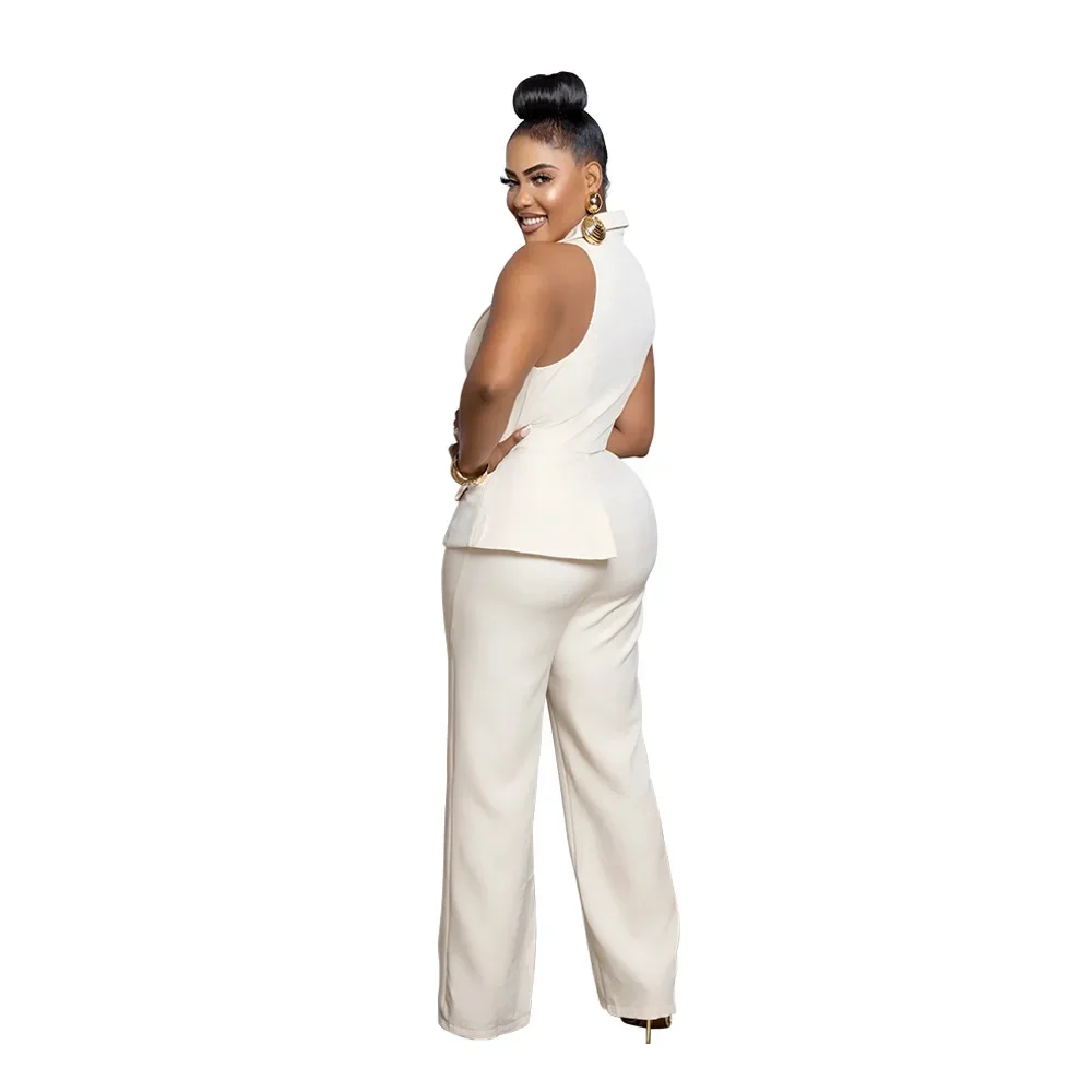 Amay Dashiki African Elegant Fashion Women Black Jumpsuits Sleeveless Wide Leg Pants Rompers Party Office Outfits Spring Summer