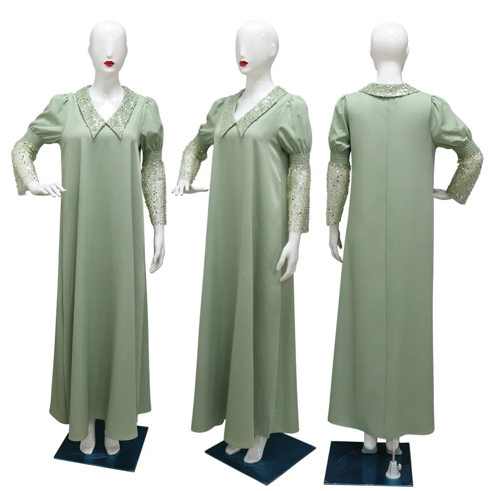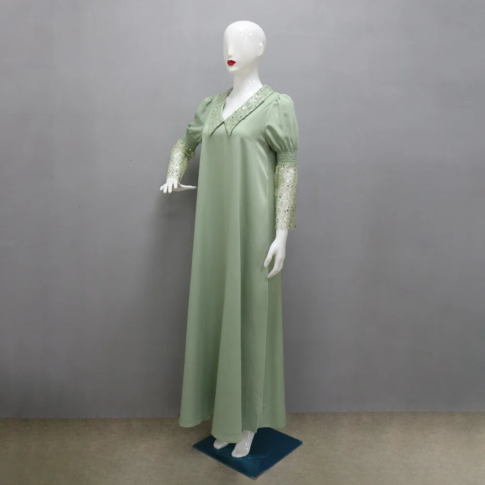 Amay Eid Sequin Abayas for Women Muslim Maxy Dress Dubai Abaya Ramadan Islam Jalabiya Caftan Marocain Femme Turkey Kaftan Gown