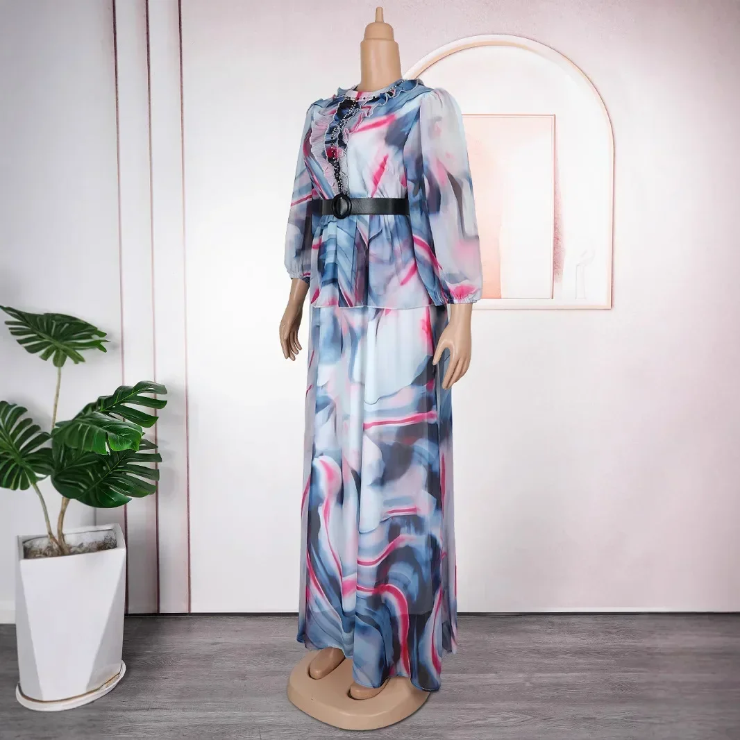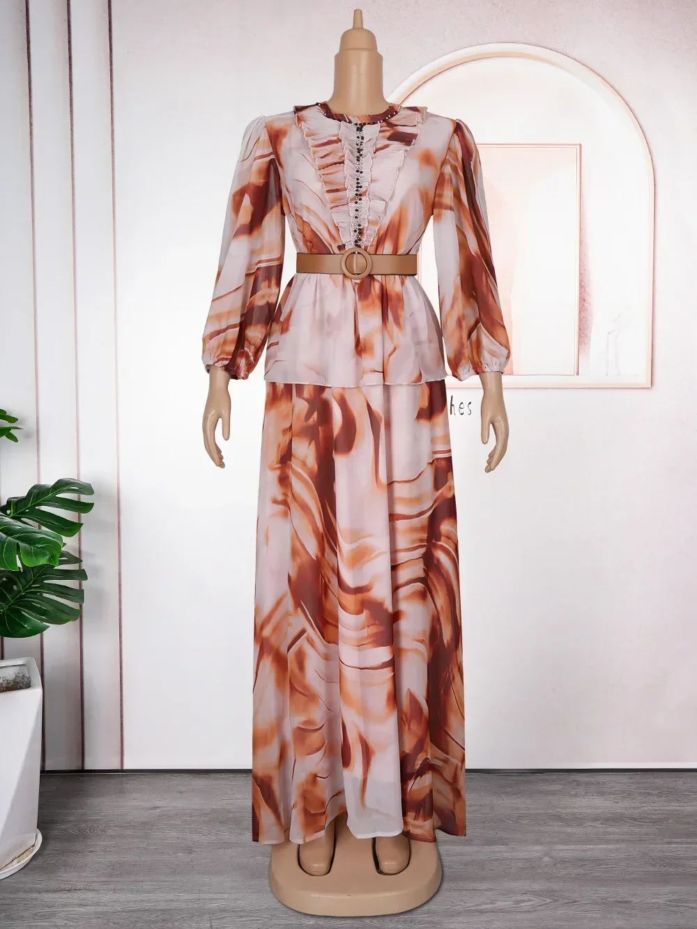 Amay Elegant Dresses for Women Autumn Spring Fashion Clothing Plus Size Muslim Print Evening Party Long Dress