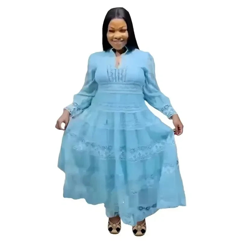 Amay Elegant Dress Women for Wedding Party Spring Autumn African Long Sleeve Polyester Lace Long Dress Dashiki African Clothes