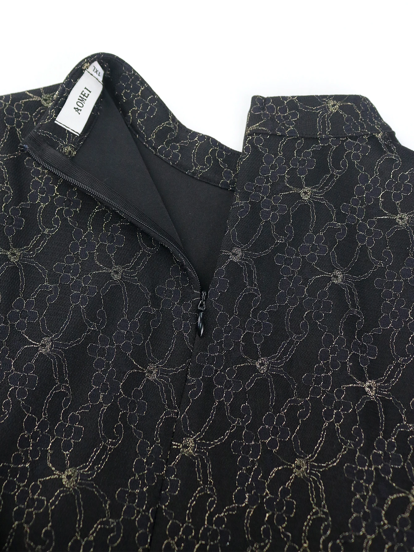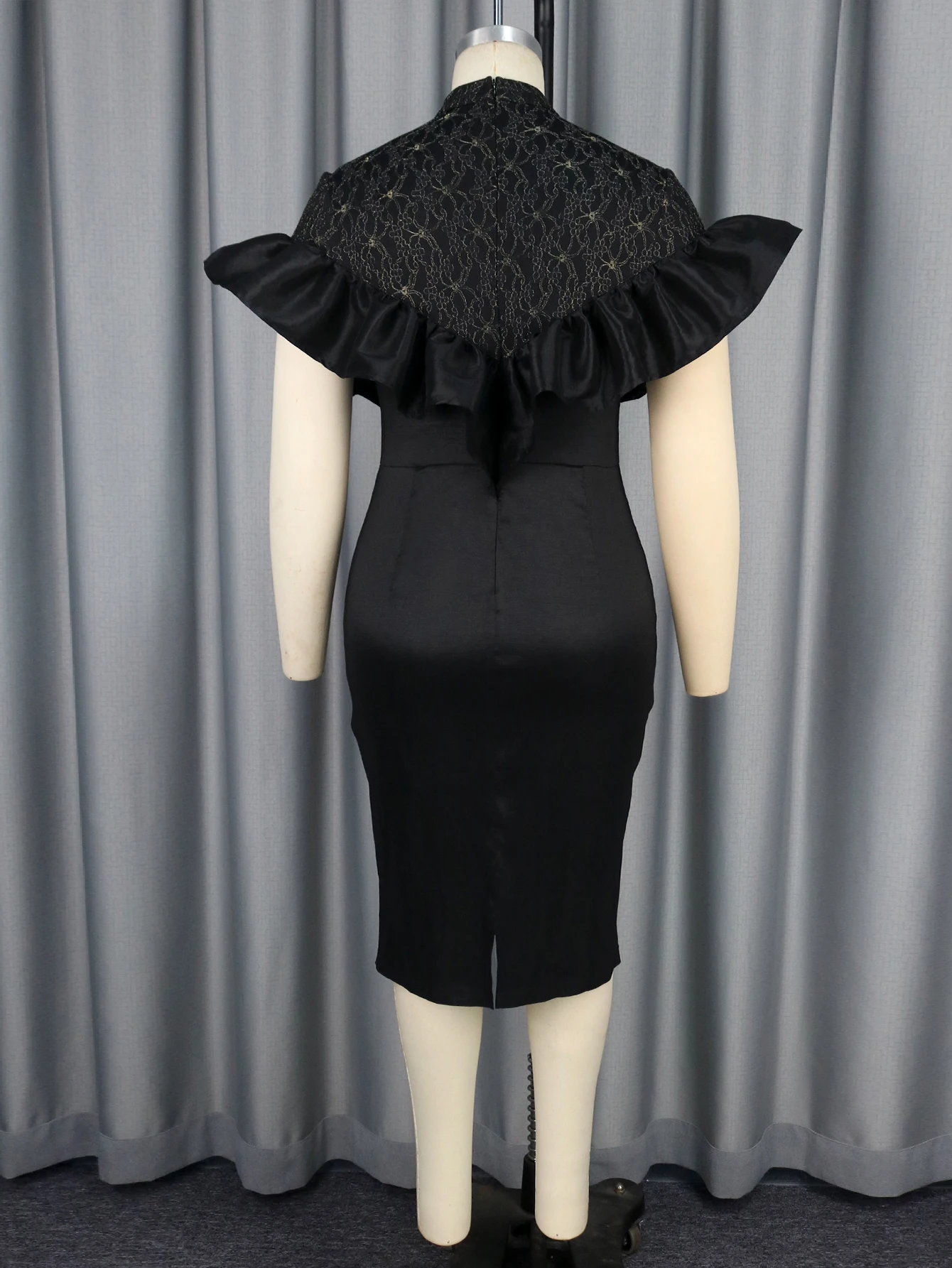 Amay Elegant Dresses for Women Stand Collar Lace Patchwork Ruffles Pencil Vintage Fashion Evening Banquet Party Package Hip Gowns