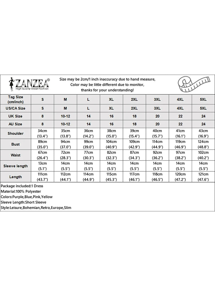 | Package included:1 Dress Material:100% Polyester Colors:Purple,Blue,Pink,Yellow Sleeve Length:Short Sleeve Neckline:V-Neck Pattern:Floral Prints Length:Mid-Calf Length Buckle chain:With Side Zipper,Button Down Front Thickness:Thin Style:Leisure,Bohemian,Retro,Europe,Slim Season:Spring,Summer,Autumn Occasion:Family,Party,Beach,Wedding,Holiday Label: Yes Attentions: 1.The Real Object May Exist Slightly Colors Differences Compared To Images As Different Computers Display.Caution If Minding,Thanks. 2.There Might Be A Manual Measuring 1-3 cm Error.Sorry For Any Inconvenience. 3.Please Prevail On Real Item, Model Images For Reference Only. 4.Attention!!!Please check the size chart carefully before placing the order.
