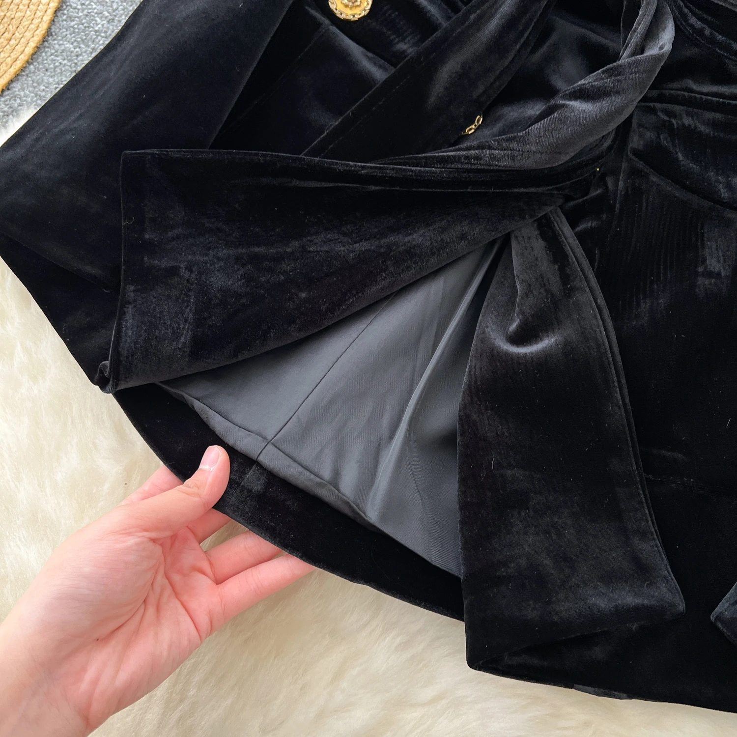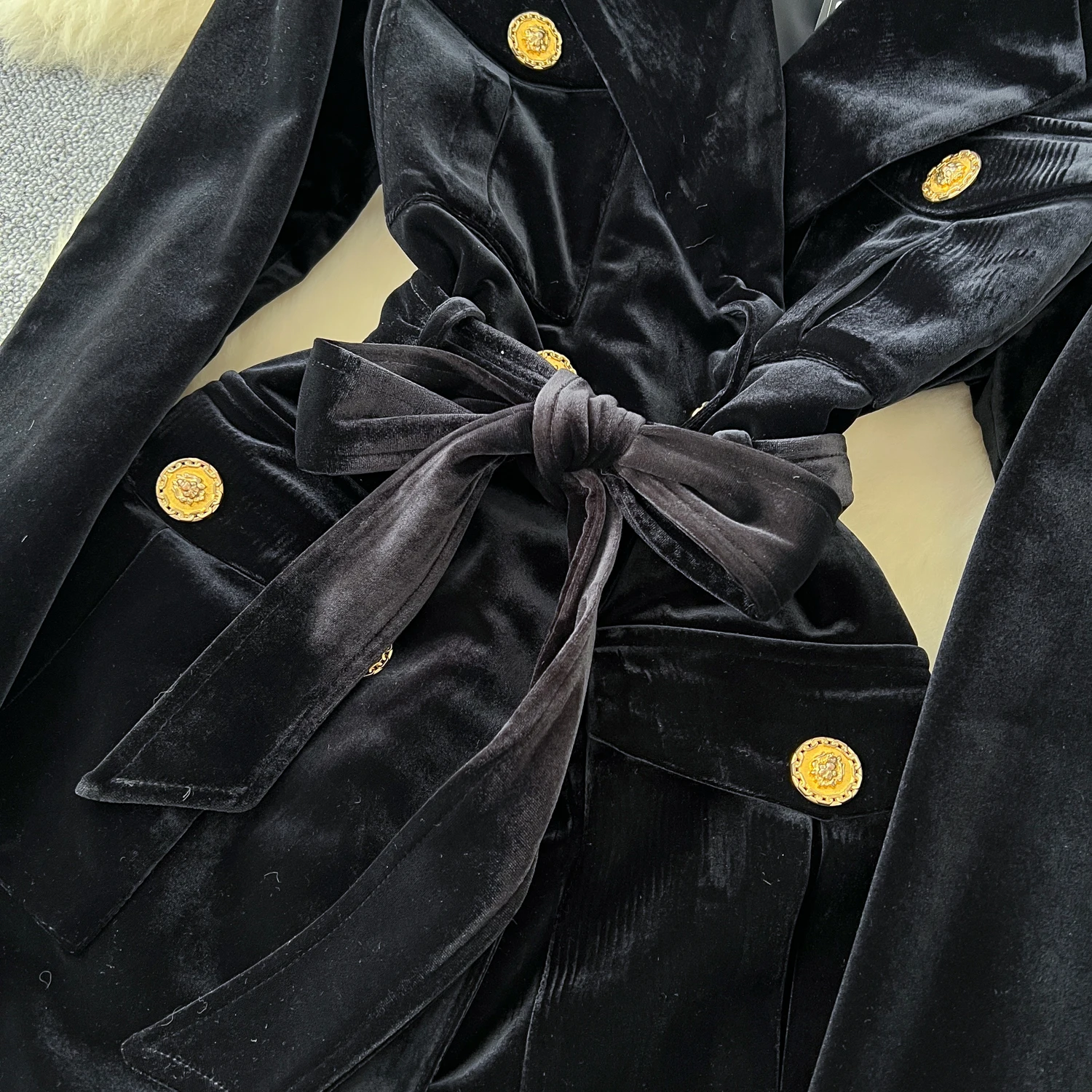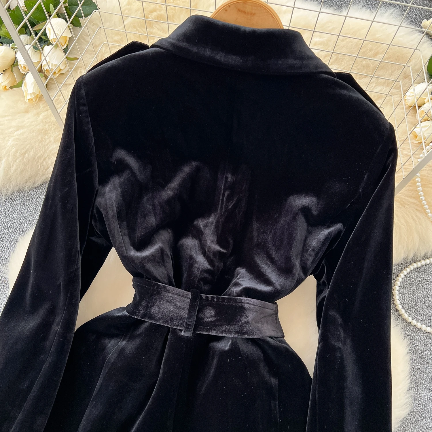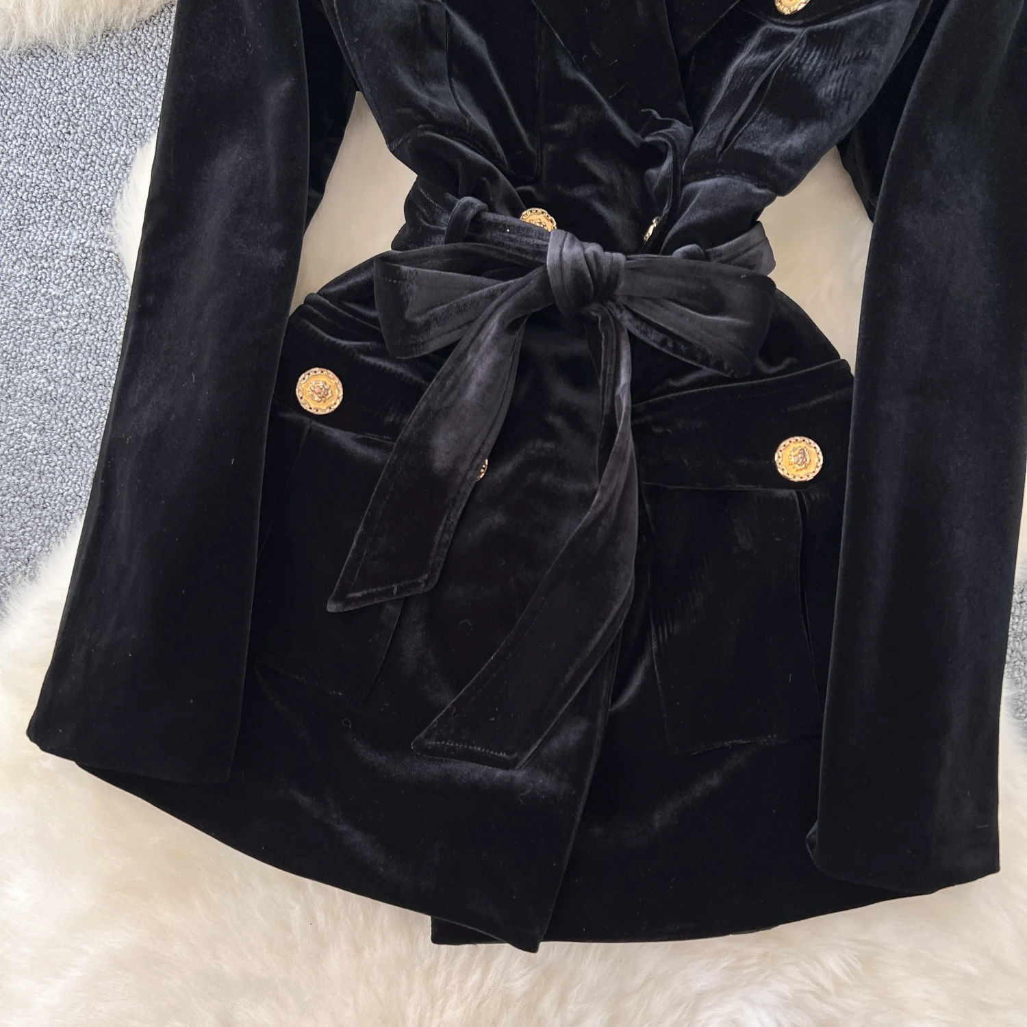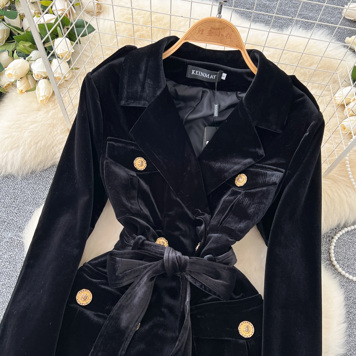Amay Elegant Turn-down Collar Vintage Long Sleeve Chic Metal Buckle Slim Bandage Coat Korean Fashion Office High Street Winter Top