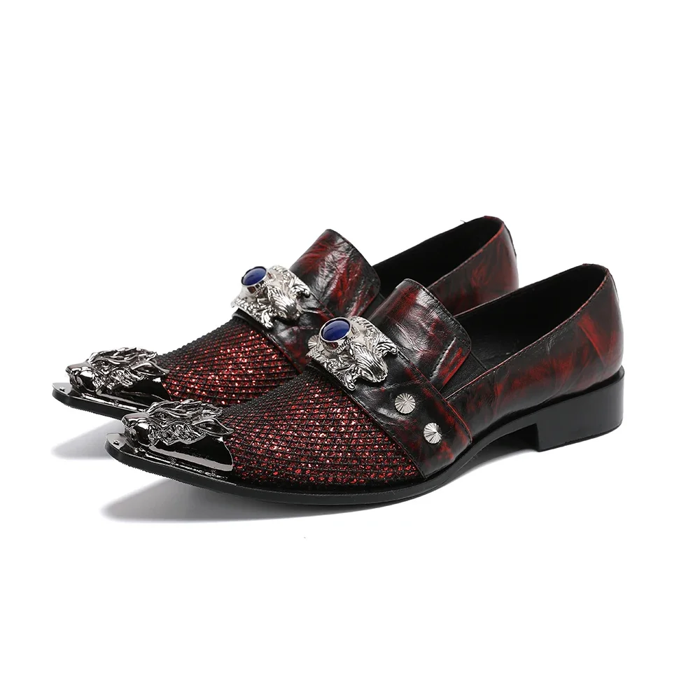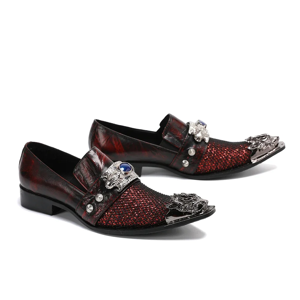Fashion Handmade Men Wedding Party Dress Shoes Italian Metal Charm Cow Leather Formal Shoes Business Office Male Shoes Plus Size