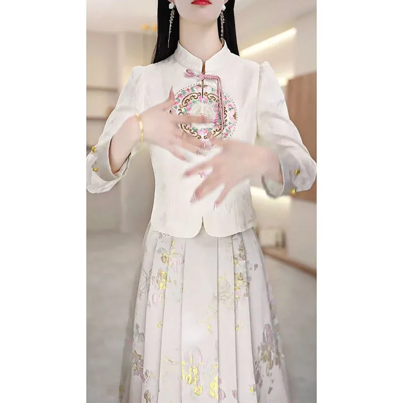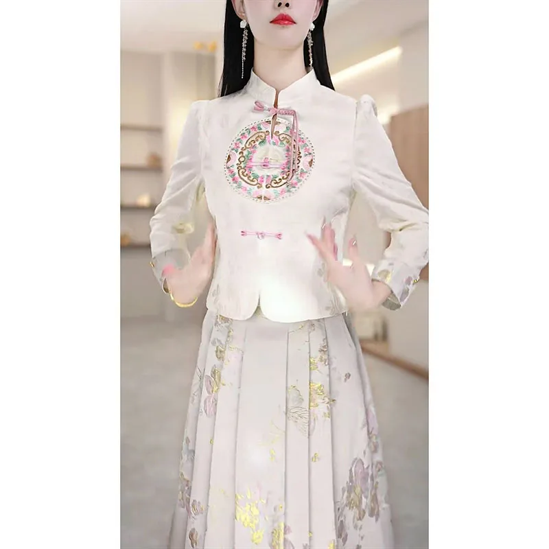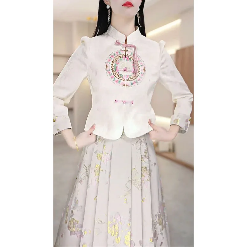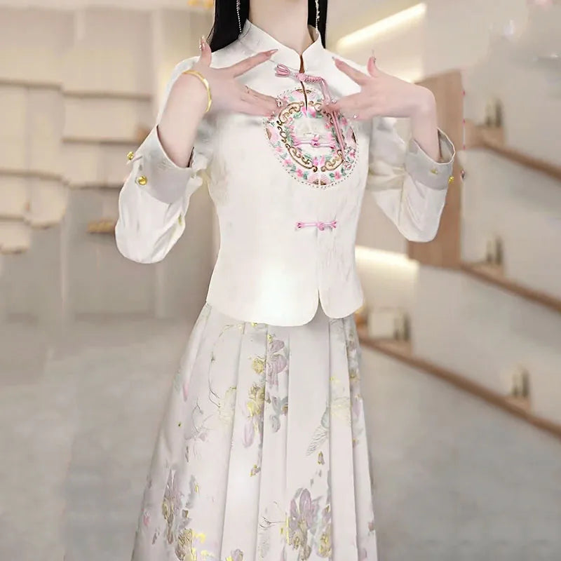 Amay Fashion Skirt Two-piece Women's Clothing Spring Summer New Elegant Horse-faced Skirt Luxury Party Shirt Floral suit Female