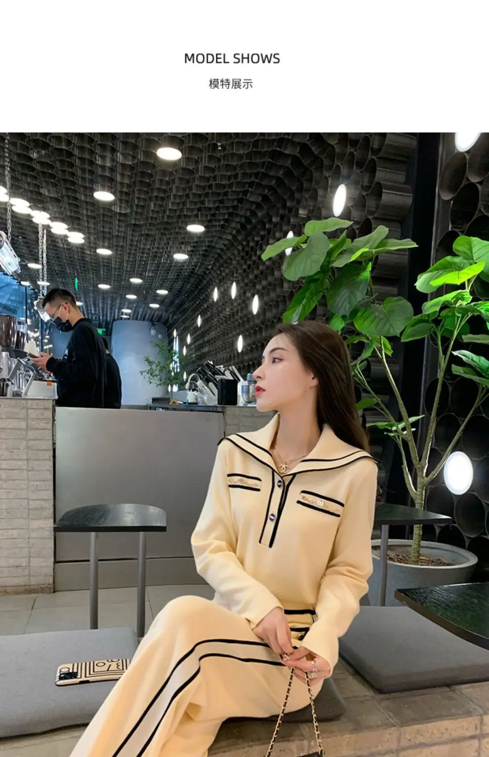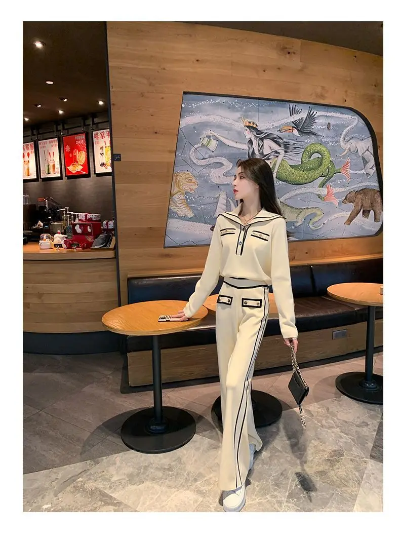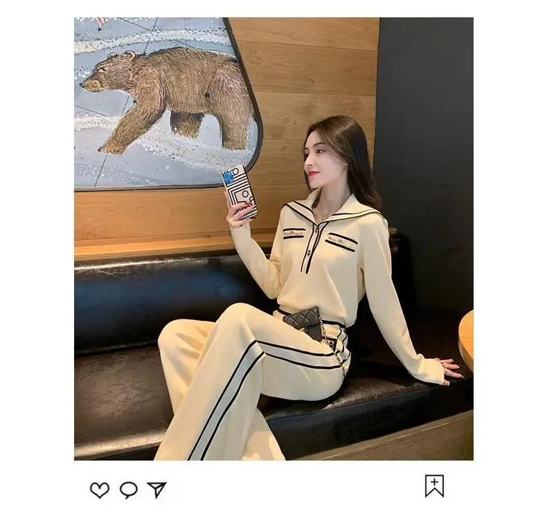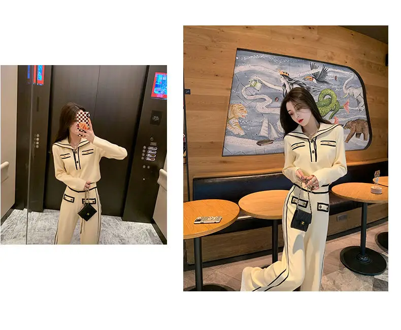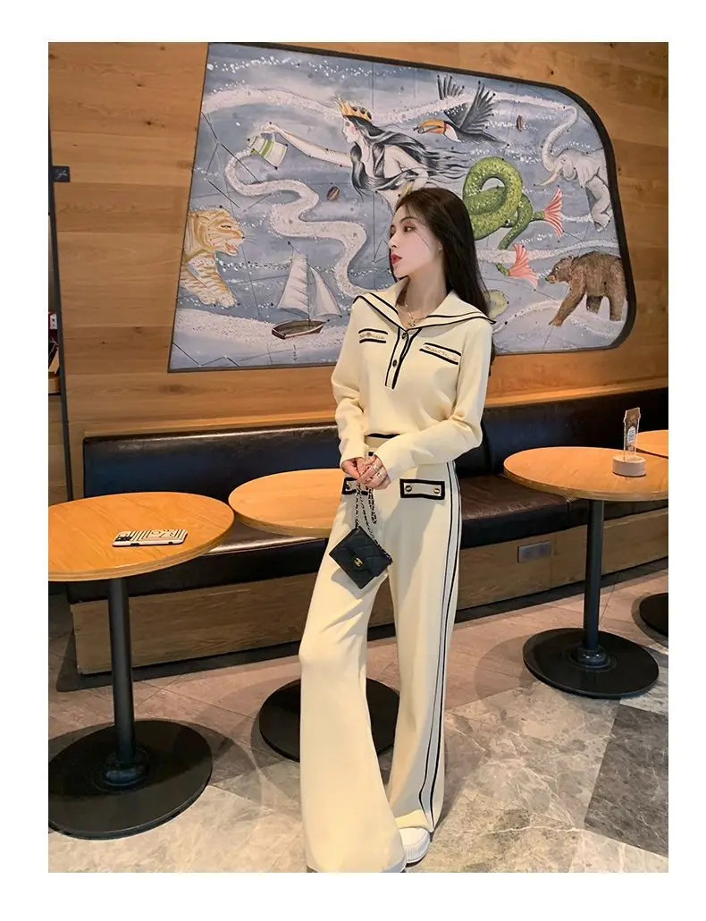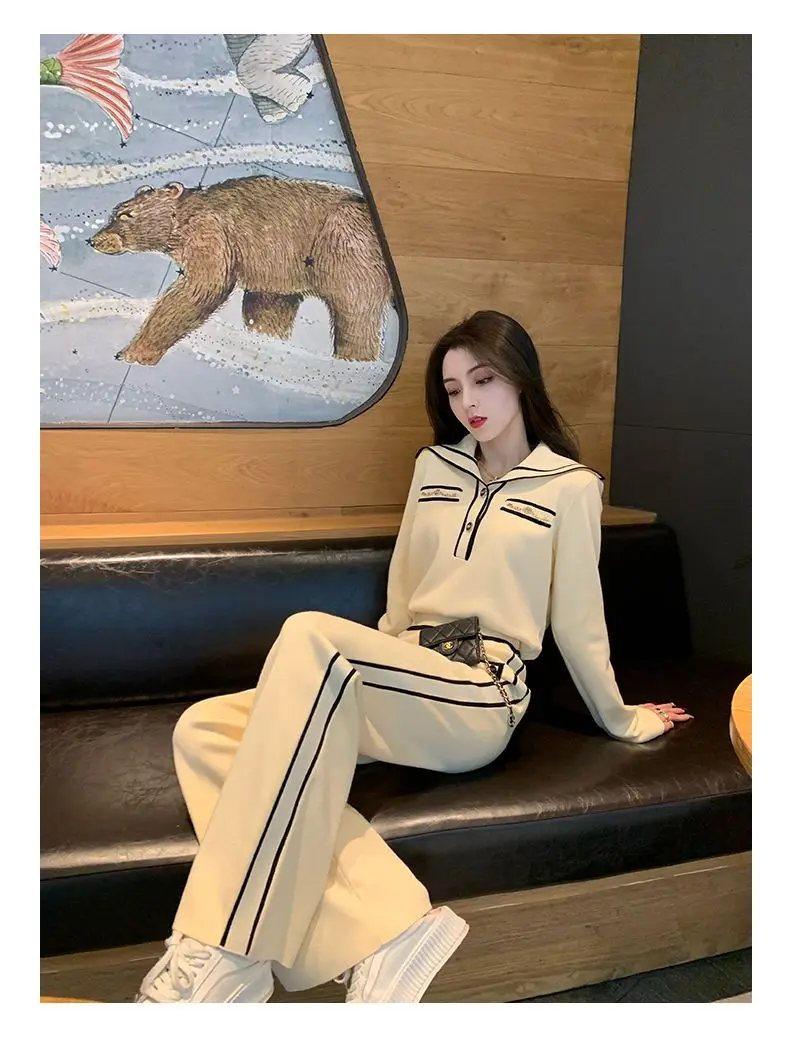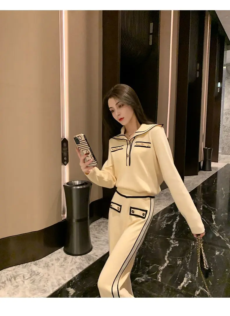Amay Fashion Suit Women's Autumn and Winter New Style Western-style Age Reducing Navy Collar Top Long Pants Two-piece Set