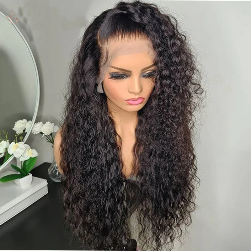 Amay Long 180% Density 26Inch Kinky Curly Glueless Natural Black Lace Front Wig For Women With Babyhair Preplucked Heat ResistanDaily