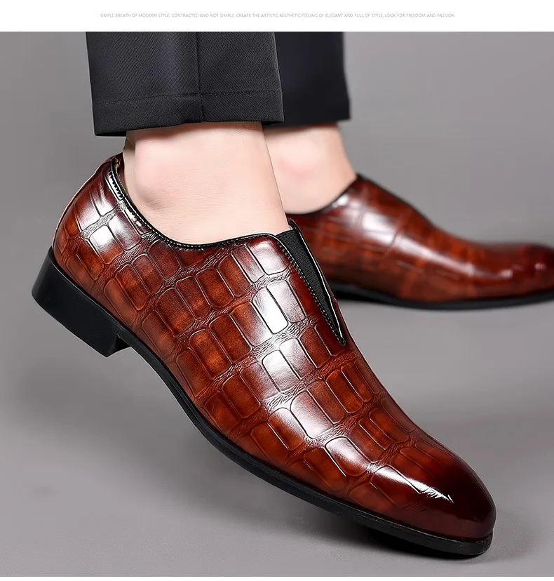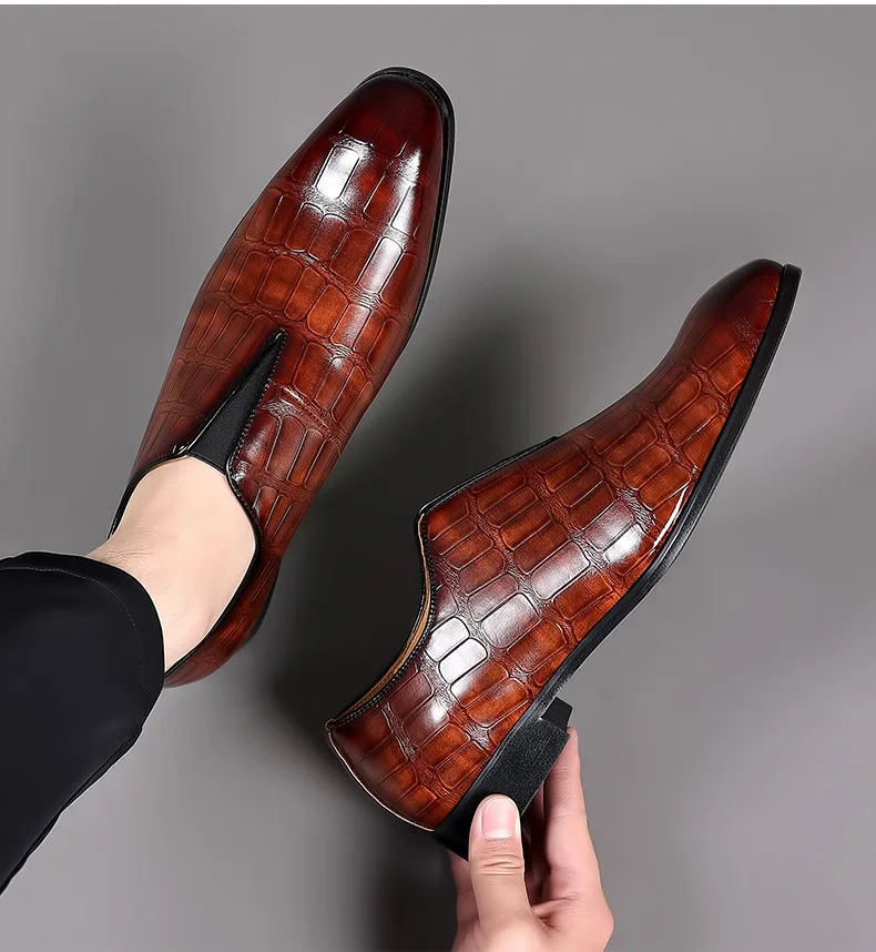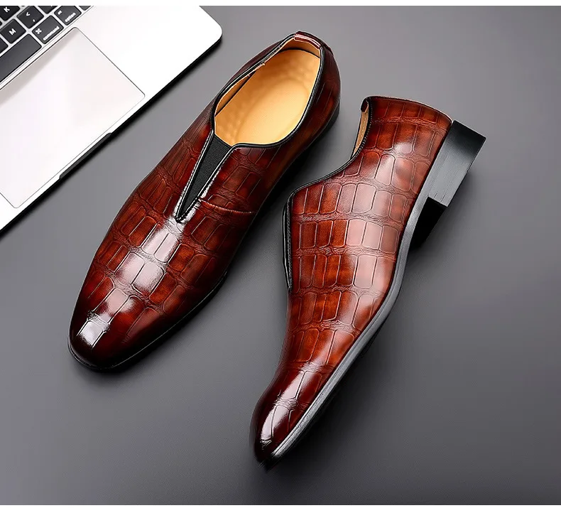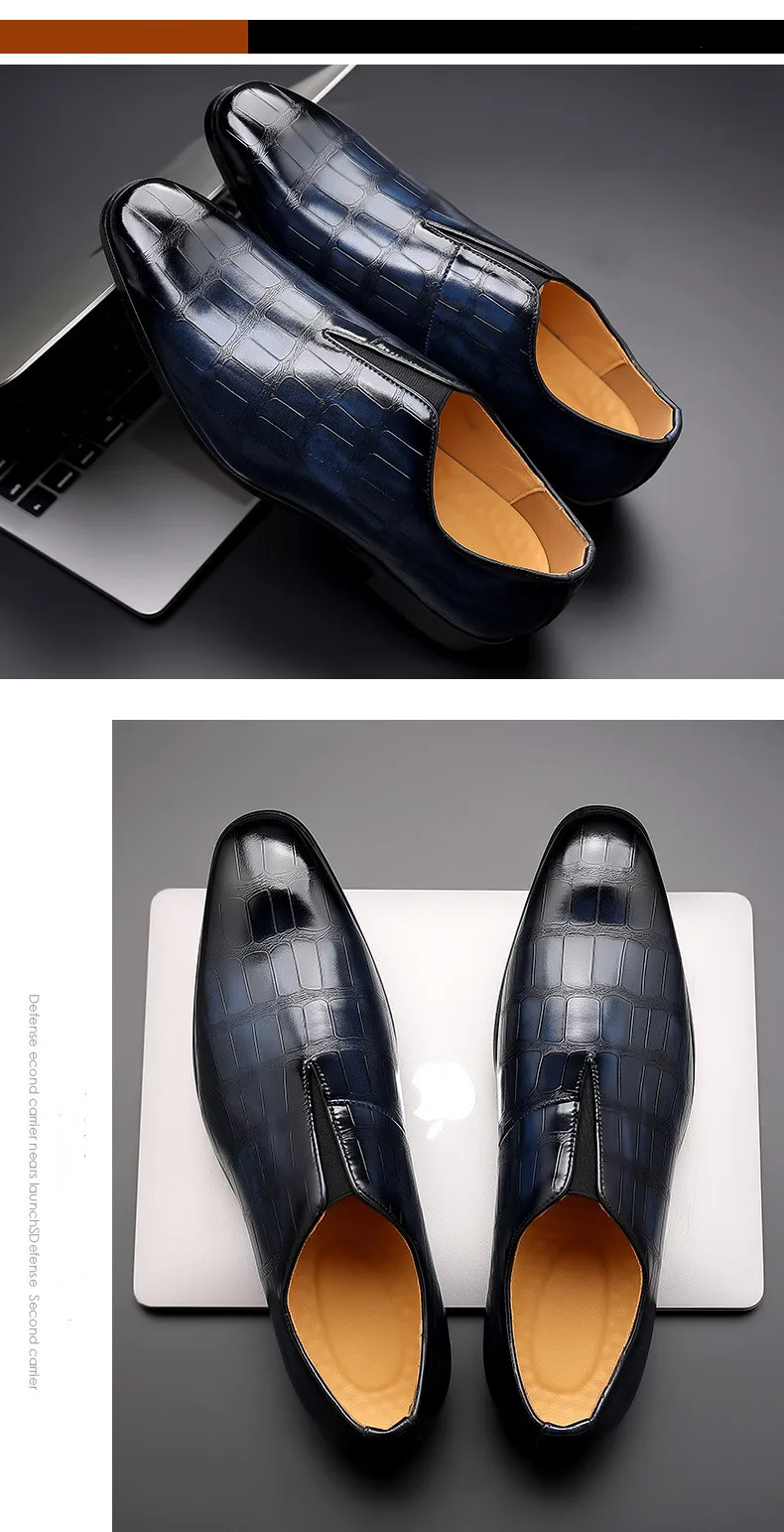 Amay Luxurious Men's Leather slip on Shoes Business Man Flat Classic Men Dress Shoes Leather Italian Formal Oxford shoes