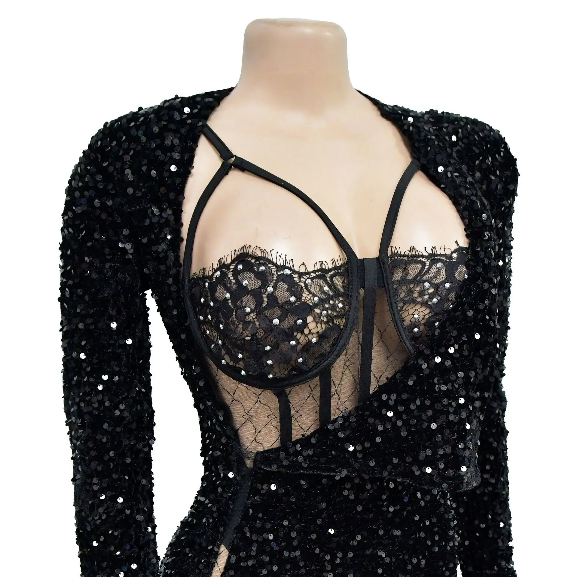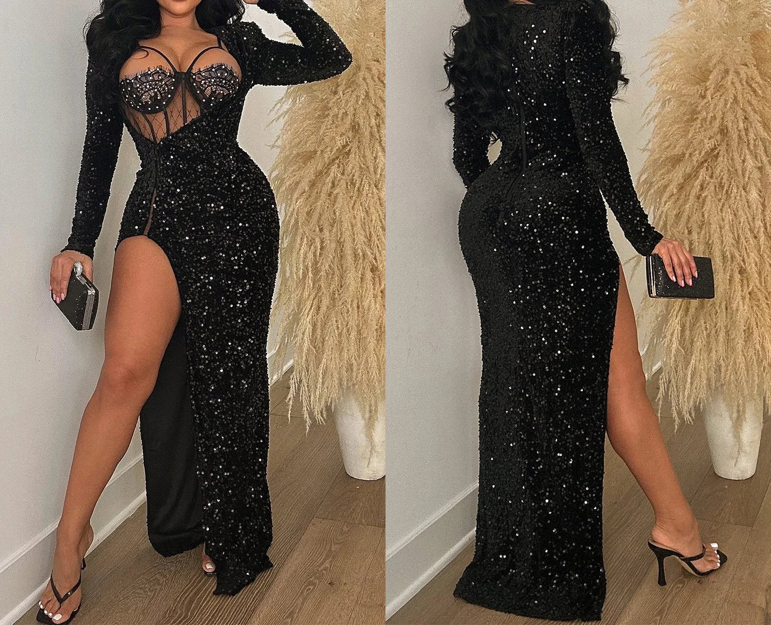 Amay Luxury Dresses Women Sequin Elegant Party Dresses Woman Long Slit Dress Sexy Cocktail Prom Formal Evening Dresses HXY518