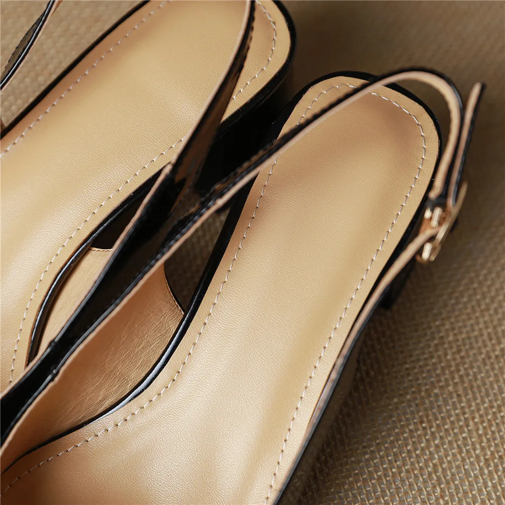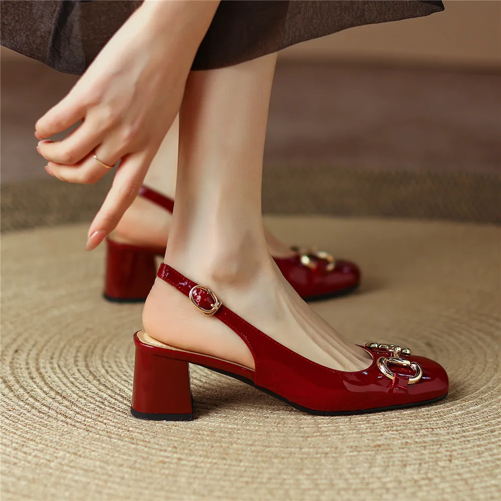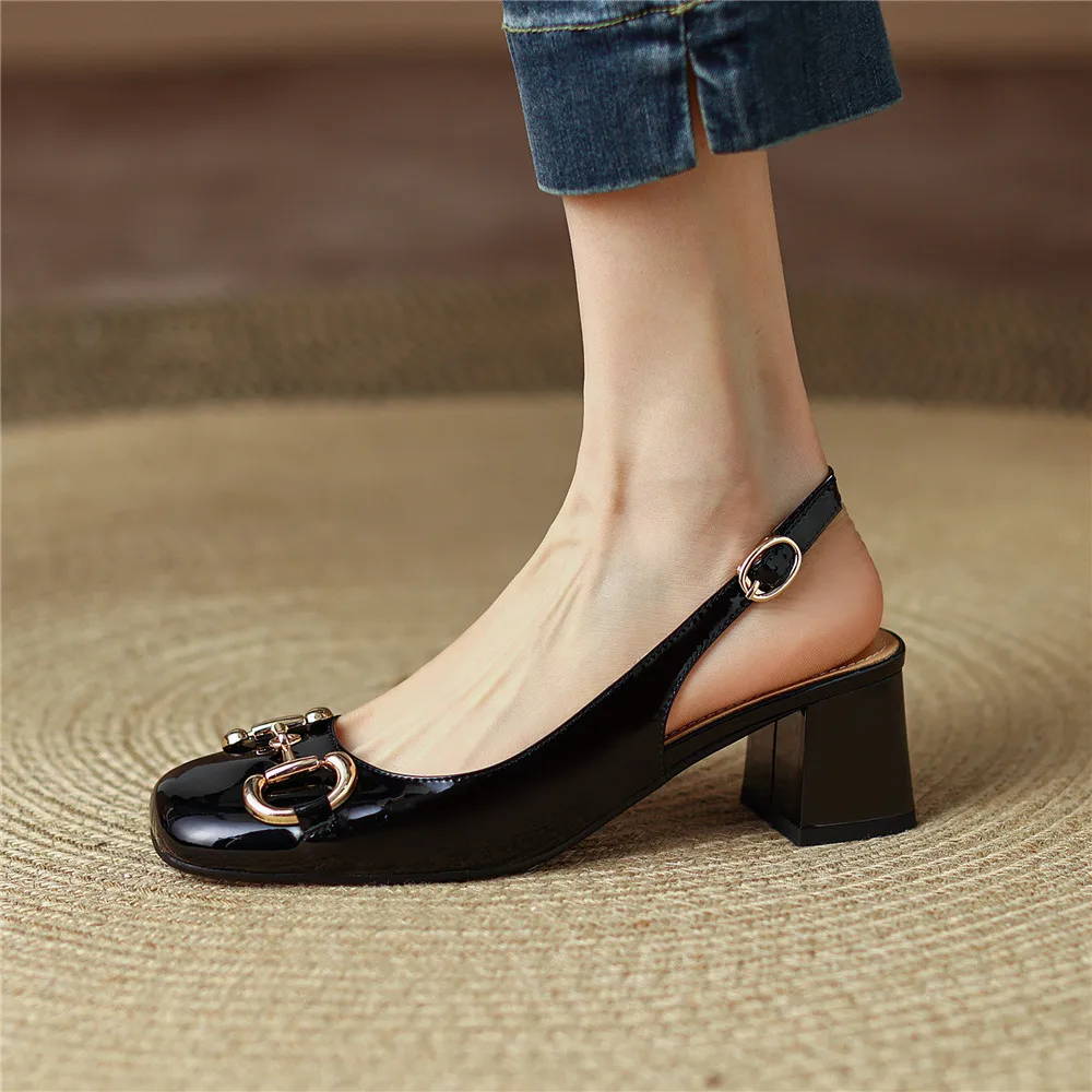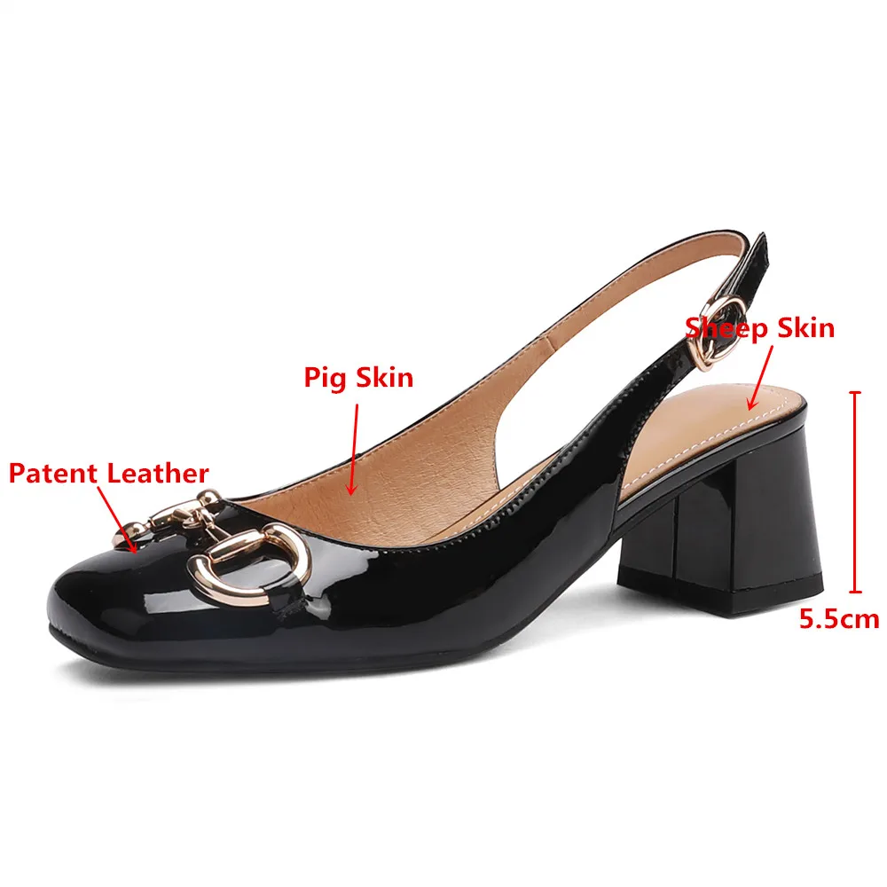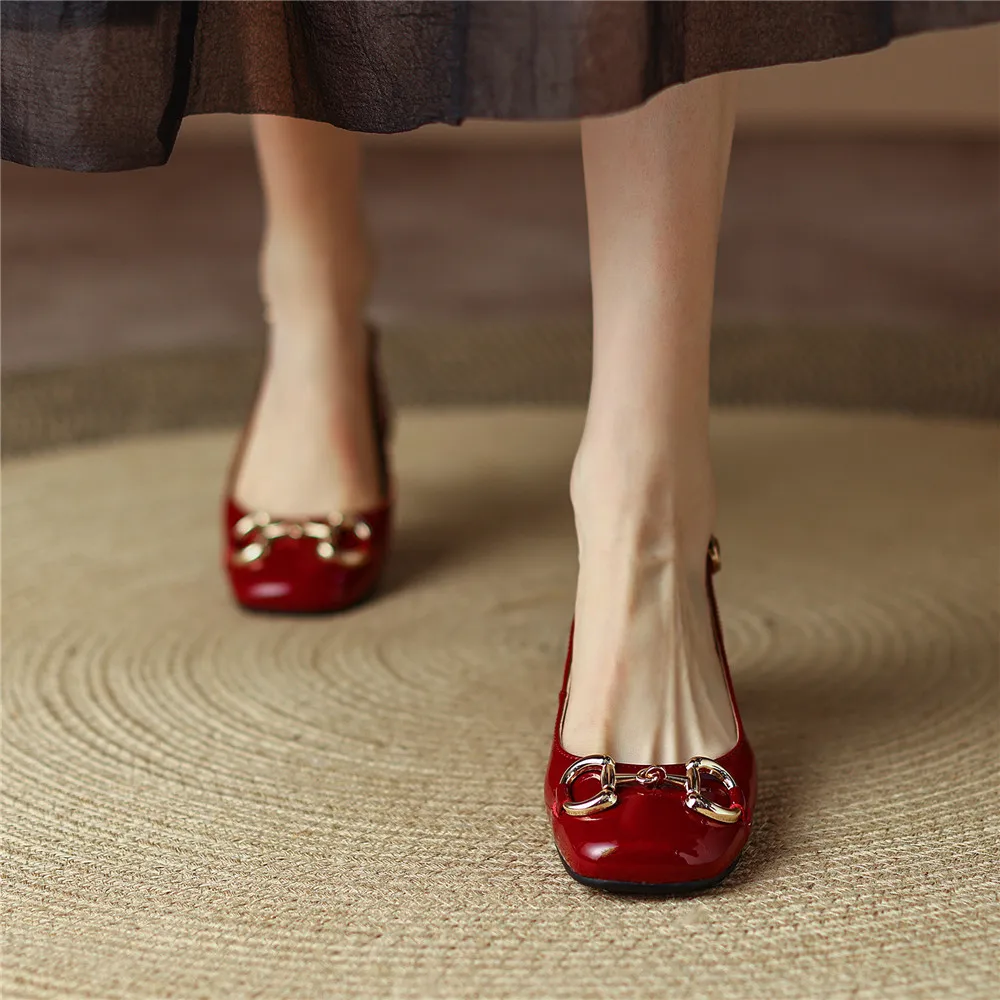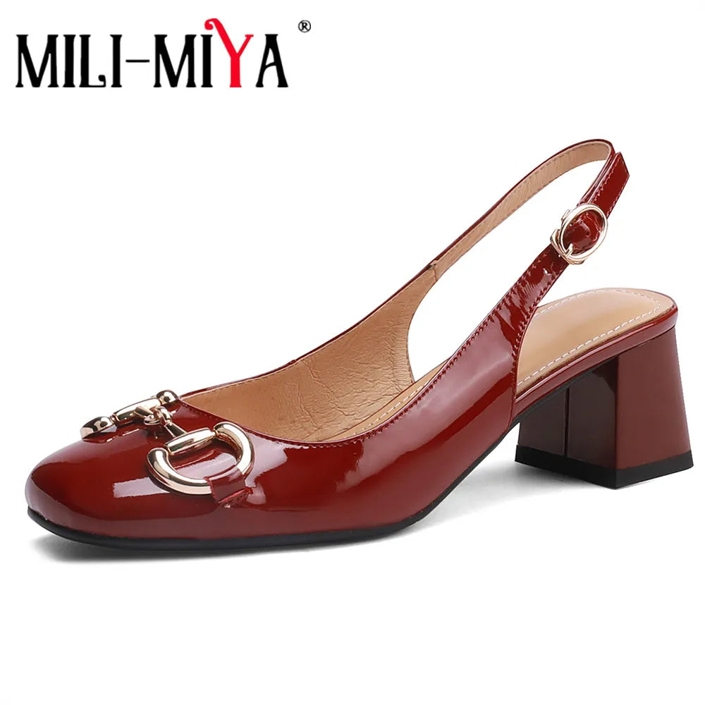 MILI-MIYA Classic Metal Buckle Women Patent Leather Pumps Round Toe Thick Heels Slip On Plus Size 34-43 Spring Autumn Shoes For Ladies