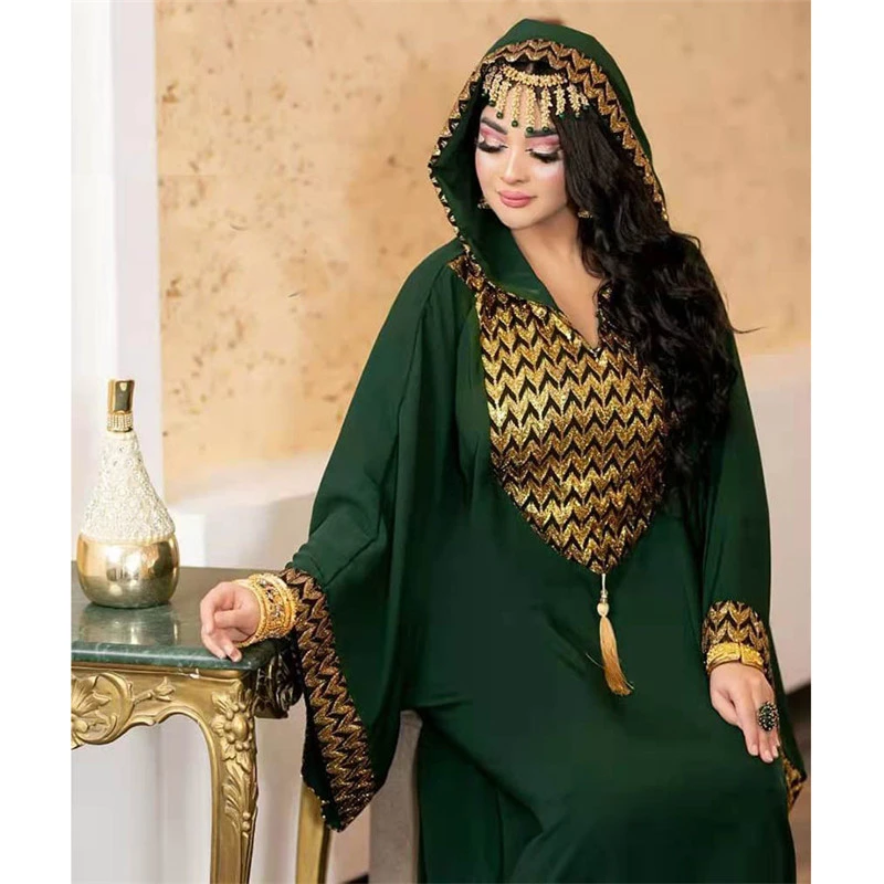Amay Muslim Kaftan Abaya Dress Women Dubai Abayas Luxury Evening Gown Elegant Hooded Dress Plus Size Boubou Djellaba Femme