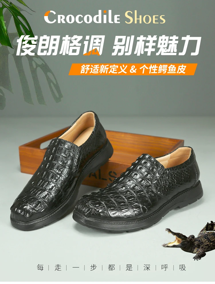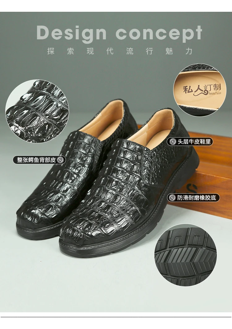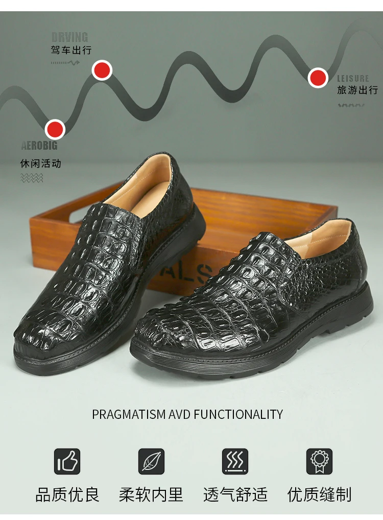 Amay New Crocodile Skin Business Loafers New High-end Leather Suede Men‘s Casual Boat Walking Male Men's Vulcanize Shoes Shoes Oxford