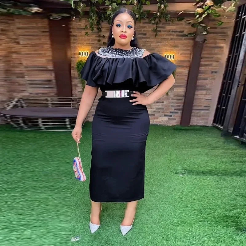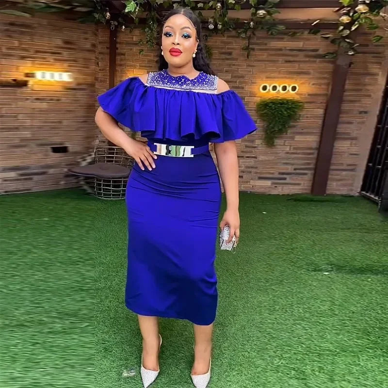 Amay New Party Evening Dresses African Turkey Women Bodycon Robe Ruffle Elegant Dress Wedding Evening Prom Gown Clothes