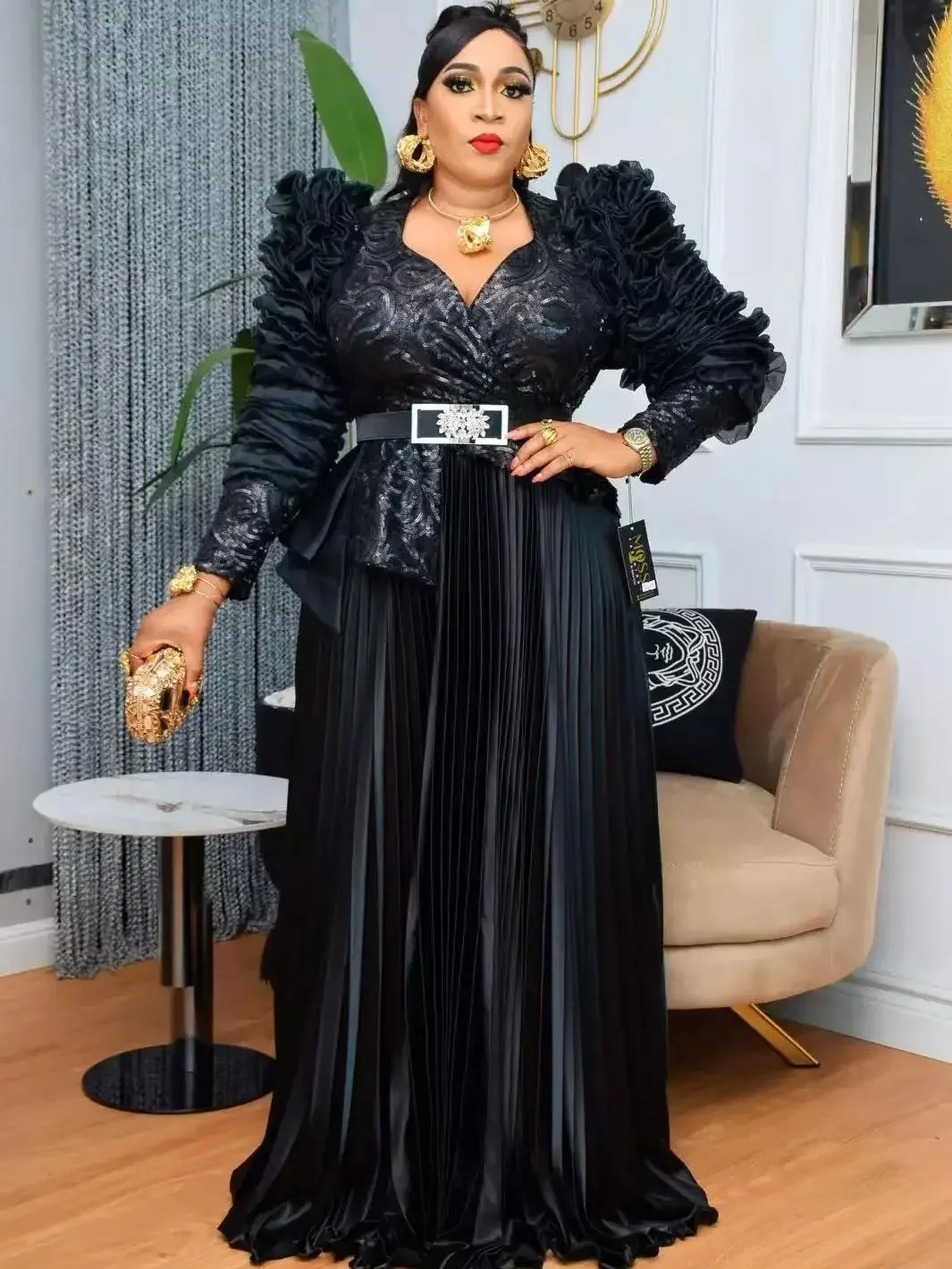 Amay Plus Size Party Long Dresses for Women New Dashiki Ankara Sequin Evening Gowns Turkey Outfits Robe Clothing