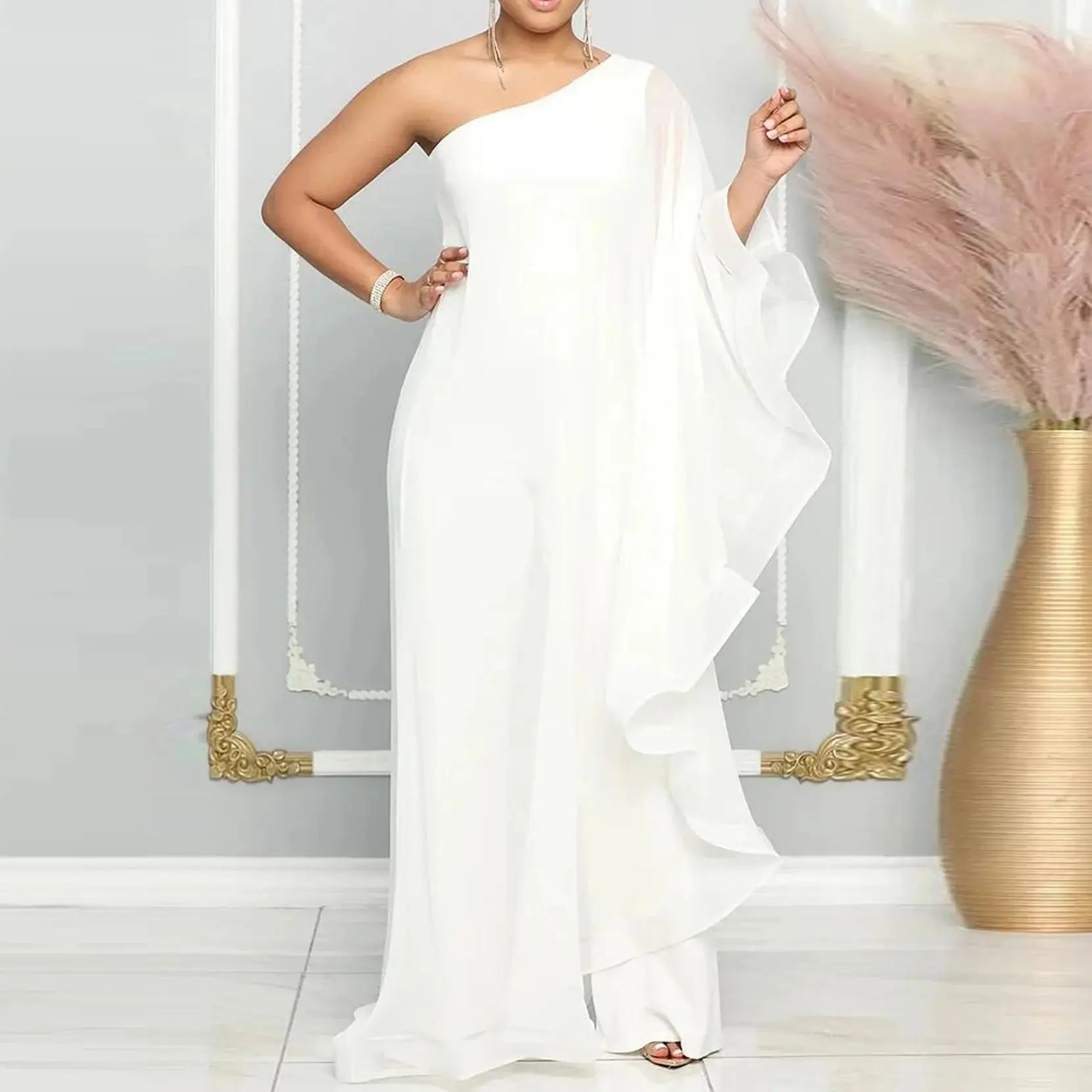 Amay Plus Size Mesh Elegant Jumpsuit Female One Shoulder Design Cloth Women One Piece Outfit Autumn Fashion Casual Jumpsuit
