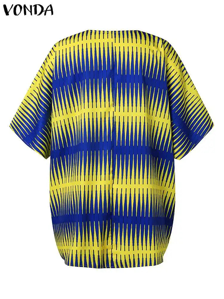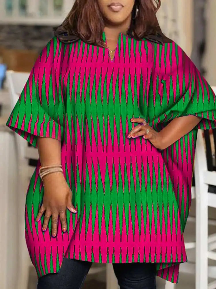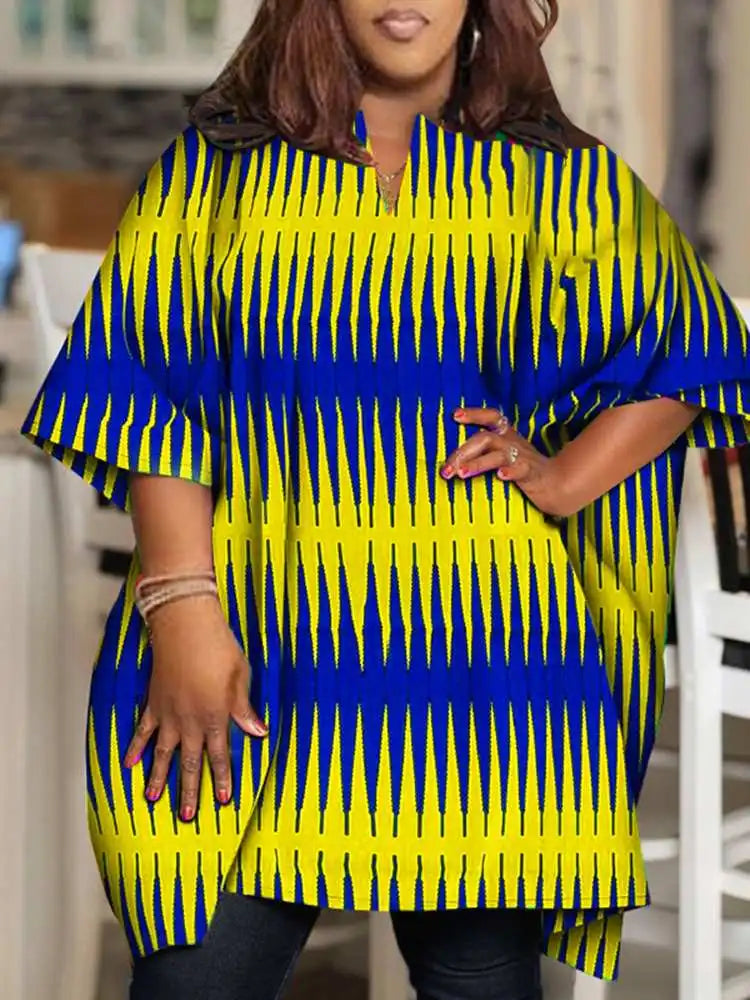 Amay Plus Size Women Elegant Printed Shirts Bohemian Blouses Half Sleeve V Neck Tops Fashion V-Neck Blusas Femininas