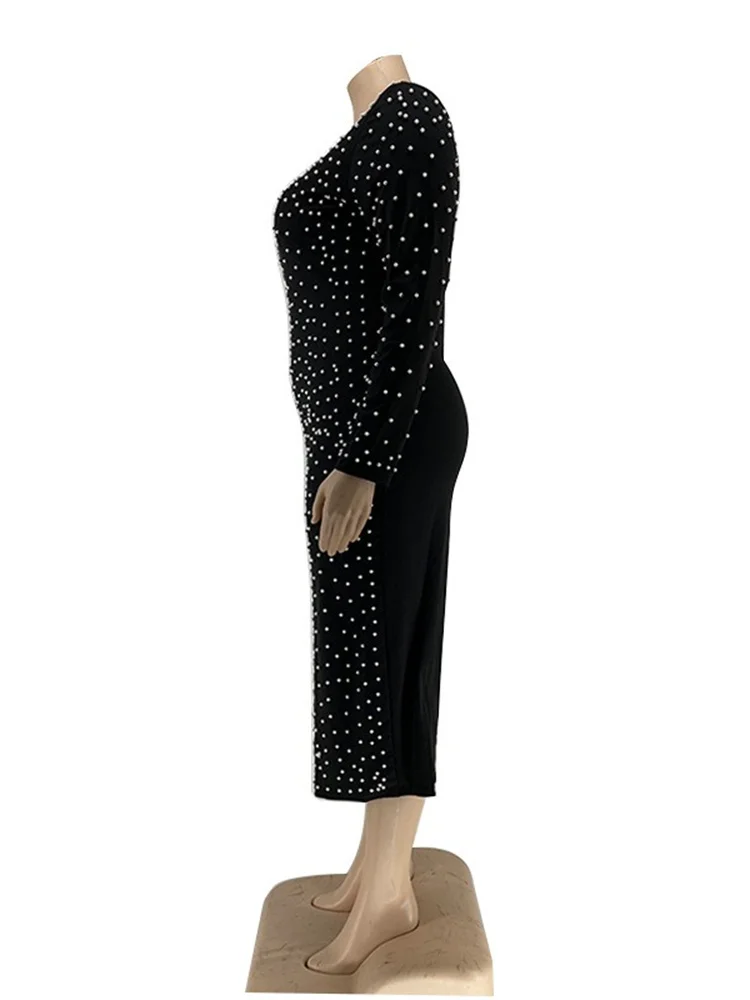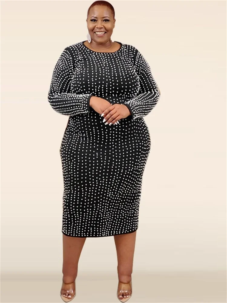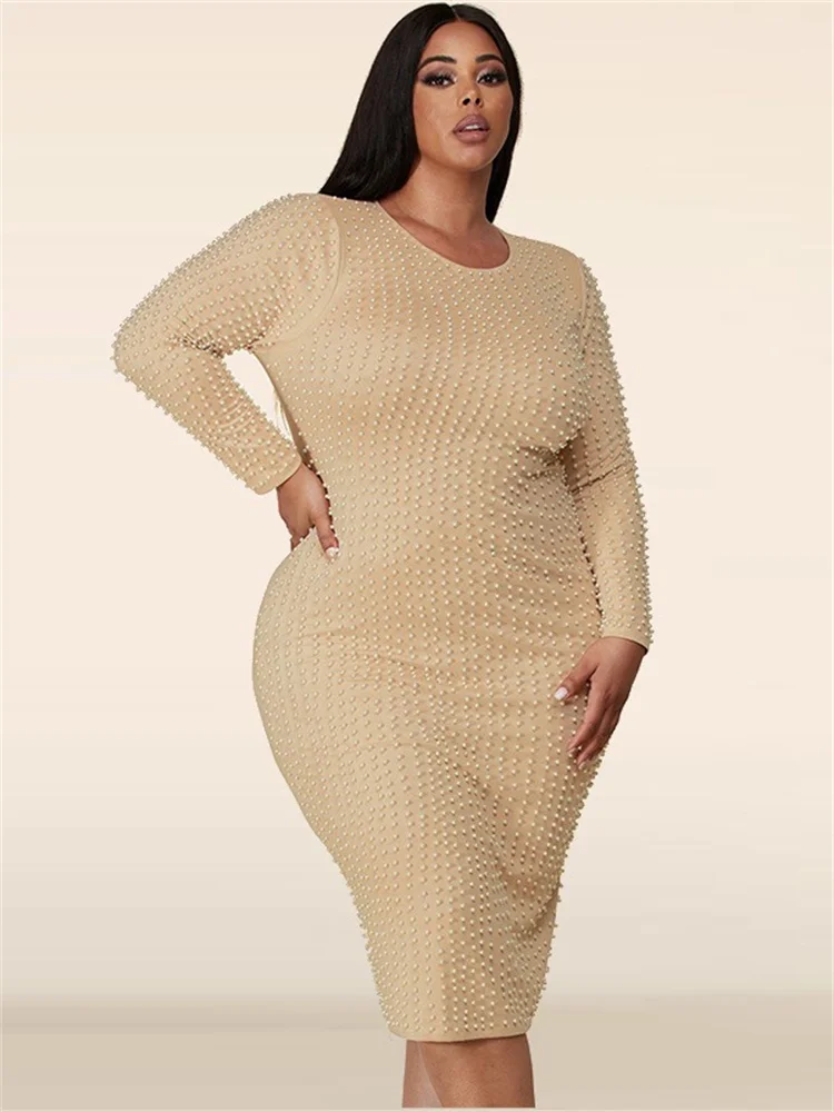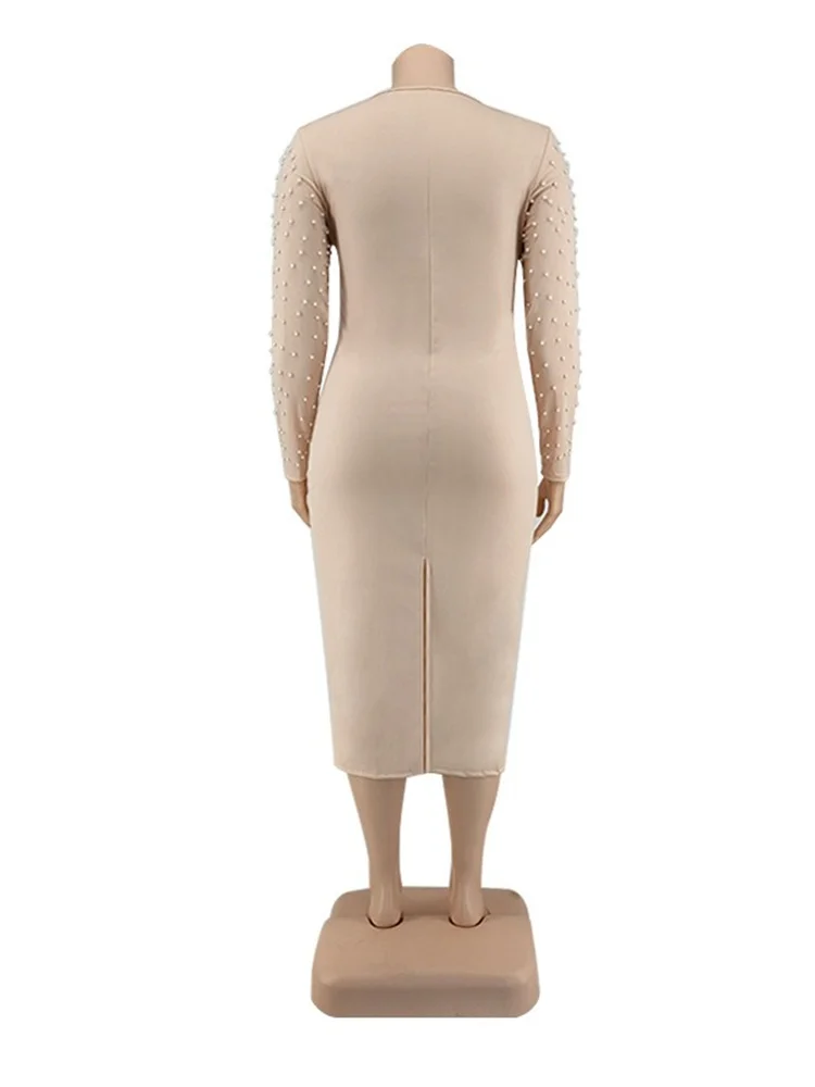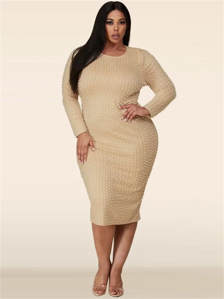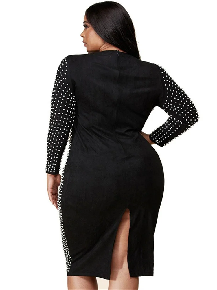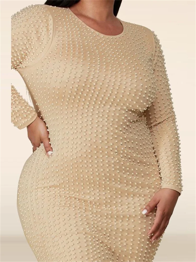 Amay Plus Size Dresses for Women Party Elegant Beading Slip Hem Maxi Dress Club Outfit Spring Clothes