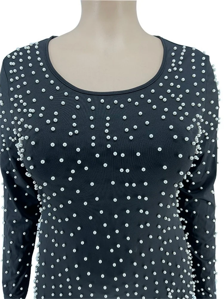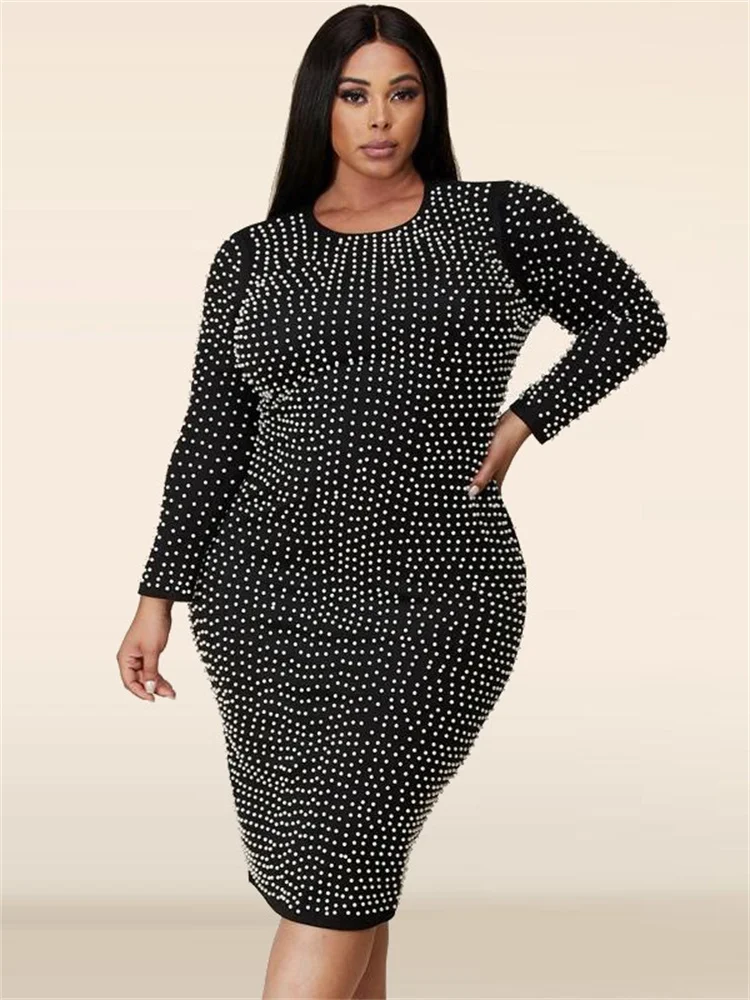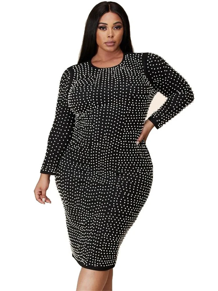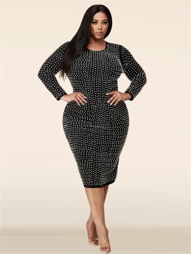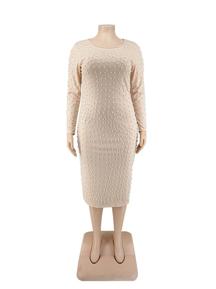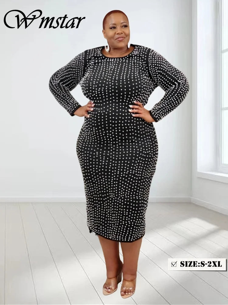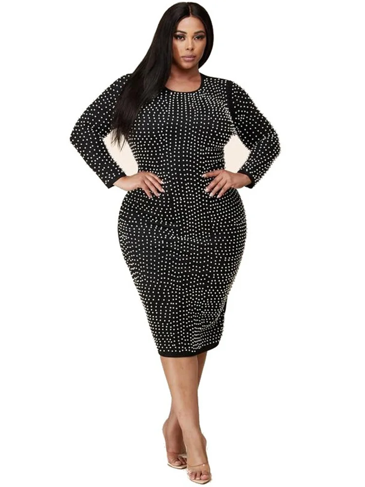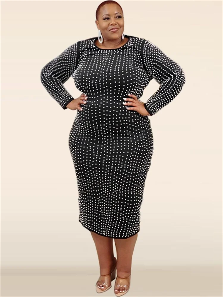 Amay Plus Size Dresses for Women Party Elegant Beading Slip Hem Maxi Dress Club Outfit Spring Clothes